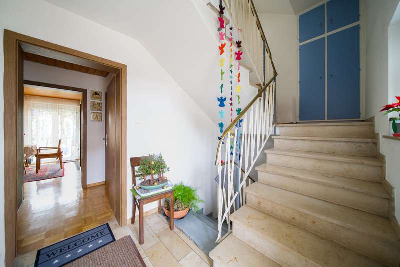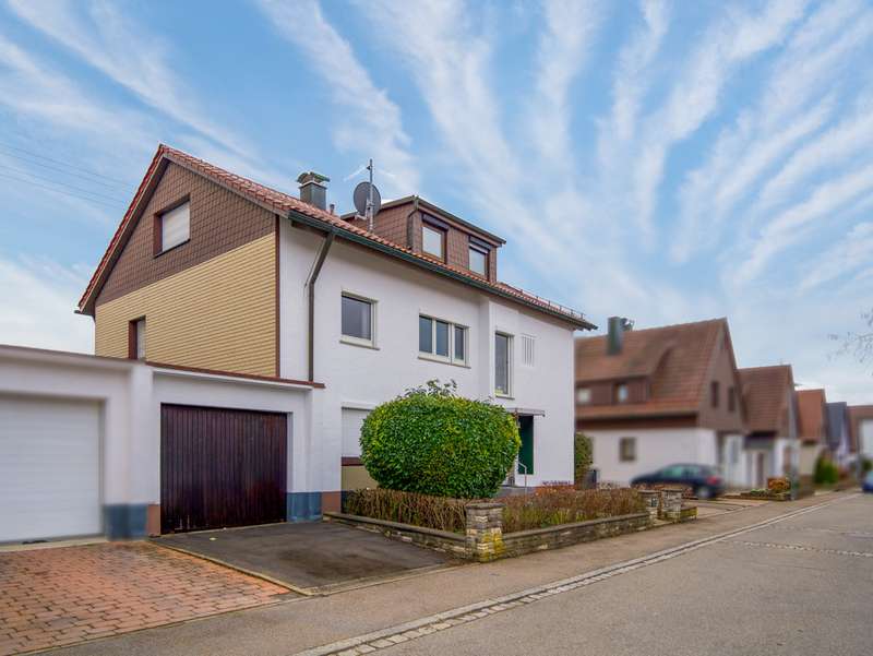 This spacious detached house from 1960 was solidly built and impresses with its generous living space of approx. 223 m², which is spread over a total of 10 rooms. There are 6 bedrooms and 3 daylight bathrooms, offering enough space for the whole family. The house was built in such a way that there is a separate 3.5-room apartment on the ground floor and first floor and a 3.0-room apartment on the top floor. The property can therefore be used as a multi-generational family home or you can rent out part of the house and generate rental income. The building naturally has a basement and houses 2 large cellar rooms, a storage room, a workshop and a small storeroom. The boiler room has a washing machine connection and separate access to the garden. A special highlight is the security door in the basement, which offers extra protection. The oil-fired central heating provides cozy warmth in all rooms and throughout the property. The house is located in a very quiet residential area on the outskirts of the village and is surrounded by fields and meadows. Nevertheless, shopping facilities, schools and public transport are within easy reach. The surrounding area is also ideal for walks and outdoor recreation. The spacious and beautiful south-facing plot is very well sized at approx. 493 m². The building has a total of 1 large balcony, two small kitchen balconies and a lovely terrace, which is ideal for relaxing and enjoying the sun. The house has been continuously renovated inside and out in recent years and presents itself in a well-kept condition. The most recent renovations include the replacement of the external steel oil tank with a plastic inner shell (2022) and the repair of the façade and repainting of the front (2021). The kitchen balconies were also fitted with a stone carpet and the balcony balustrades replaced (2021). The front door including wind protection was also renewed. In the attic, the bathroom was completely redesigned (2021) and much more was done... Overall, this detached house with 3 separate apartments offers plenty of space and quiet living for the whole family. The parking facilities with 2 x outdoor parking spaces and 1 x garage with access to the garden complete this great offer. A viewing is well worthwhile to see the benefits of this property for yourself.
