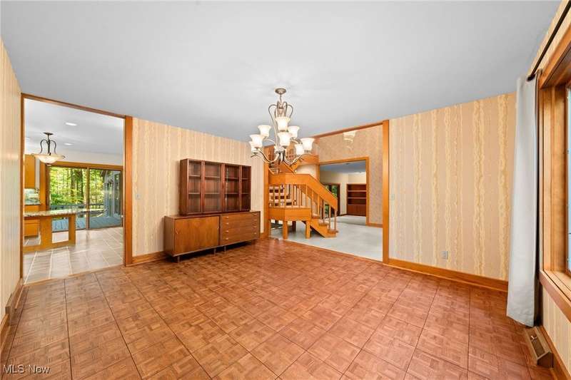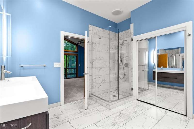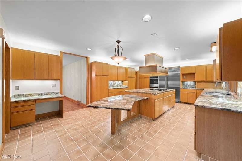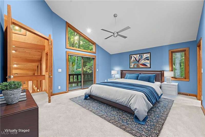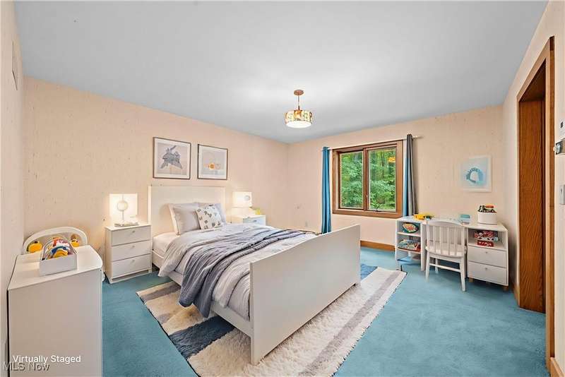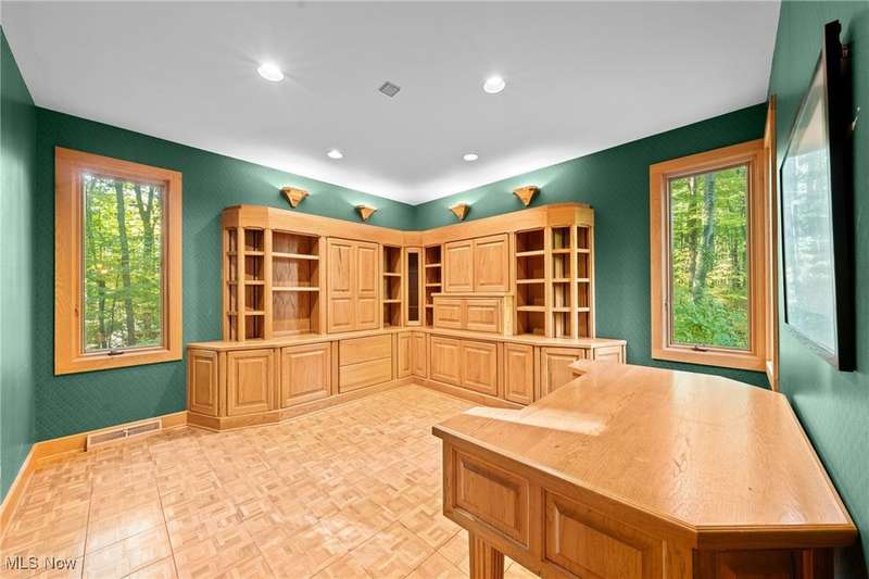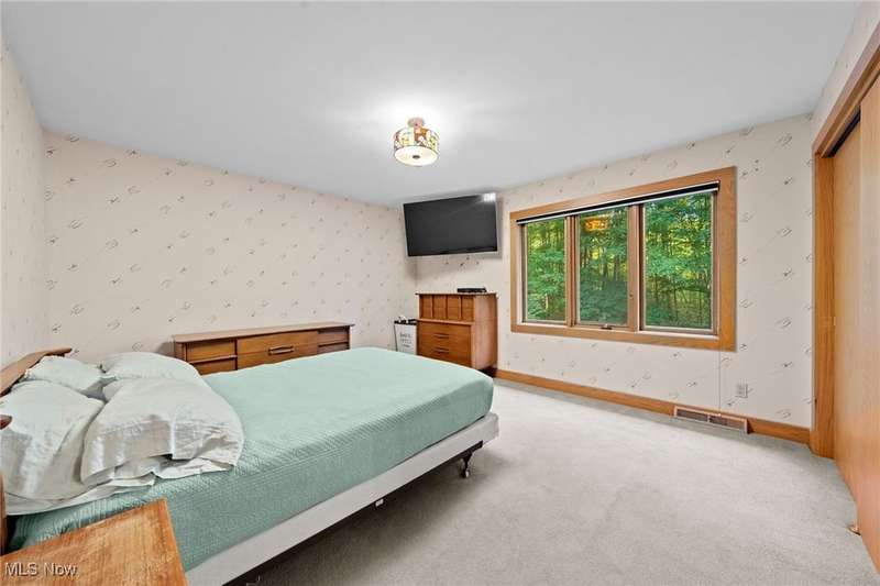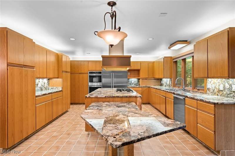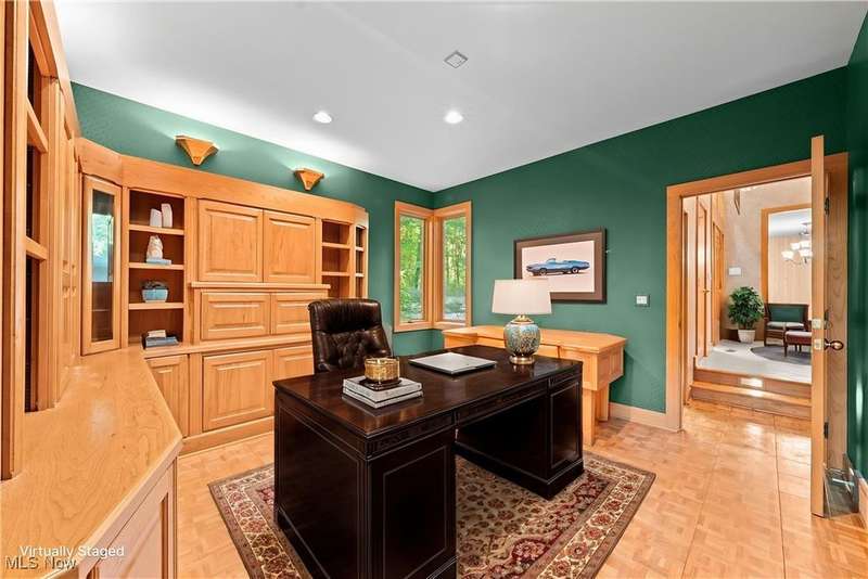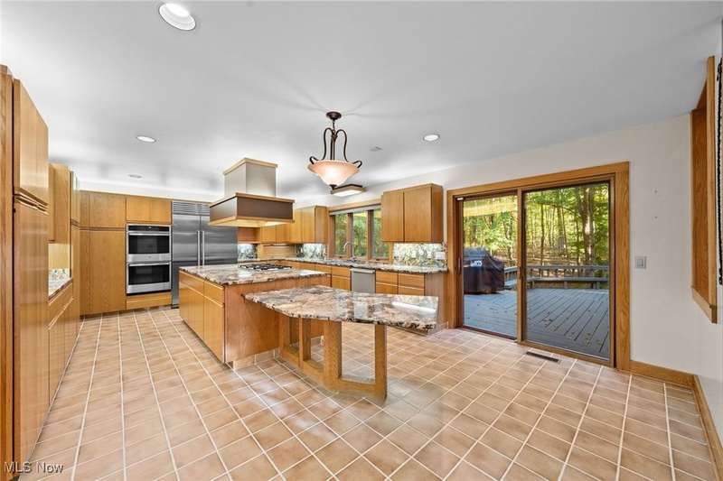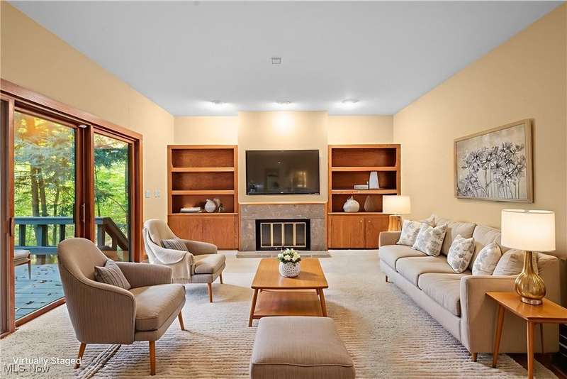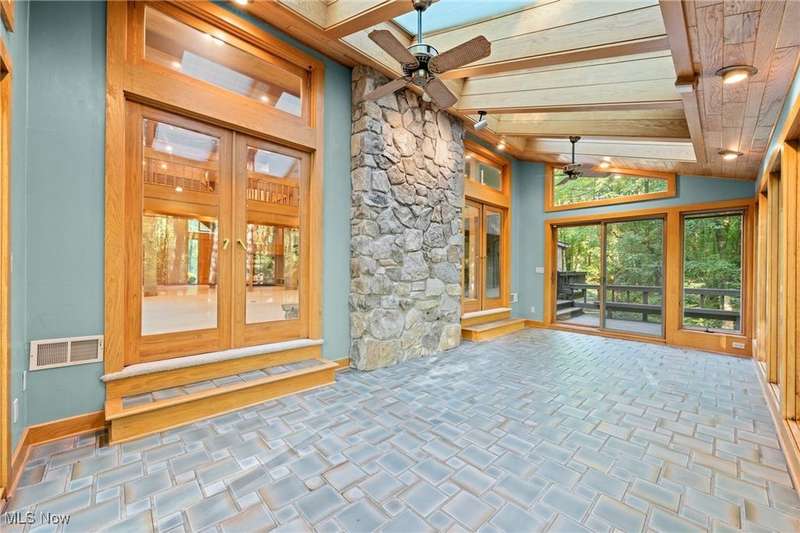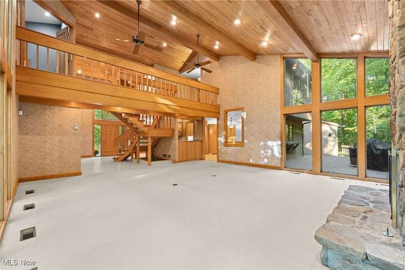 Custom contemporary Kirtland Hills property nestled within 5.2 acres of incredibly private views. The hub of this home is two-story family room surrounded by glass windows, beamed tongue and groove ceilings, and a stone flanked fireplace. A sun-room with wooded views and multiple skylights can be found off the family room. Updated kitchen dual eat-in area, peninsula seating, large island with cooktop, stone counters, and new Sub-Zero/Miele/GE Profile appliances. First floor laundry and mudroom with adjacent powder room creates a convenient traffic pattern off the garage entrance. A private office area on the first floor includes a study with amish constructed built-ins and a full bathroom. A step-down den with a second fireplace completes the first level. The primary suite boasts a privately connected balcony deck. The primary 5 point bath has been fully remodeled (2020) with custom lighting, jetted tub, music system, and high-end tile finishes. 2 nicely sized additional bedrooms and 2 additional full bathrooms complete the second level. Large wrap around deck is any entertainers dream. Private drive with circular guest parking in addition to the 4 car garage. Partially finished basement with workshop and ample storage throughout. New landscaping throughout including natural Riverstone paths and specialty plantings. Whole house generator. Please see listing agent for a full list of extensive upgrades and improvements. A very special and unique property from start to finish.
