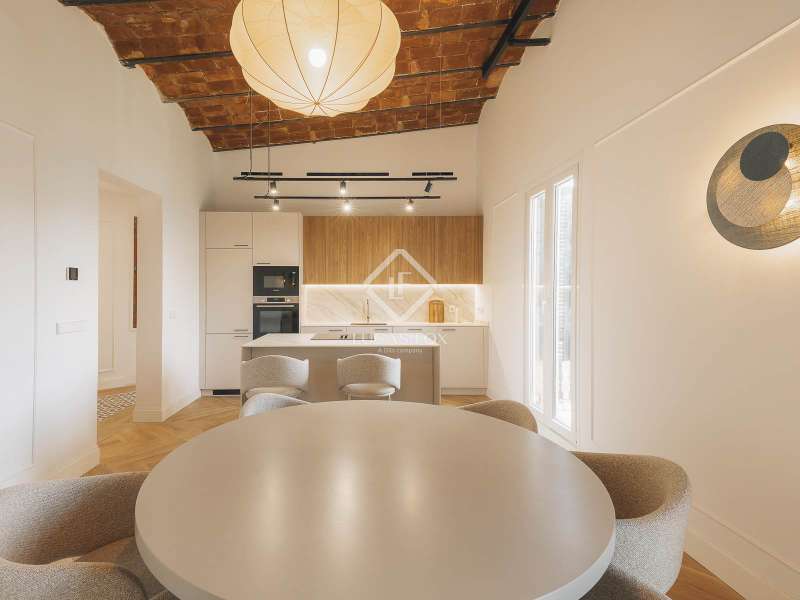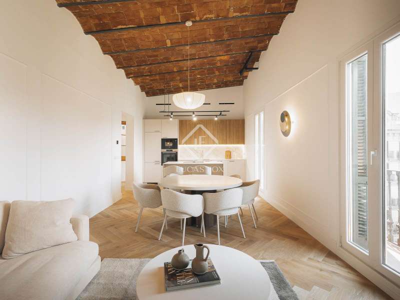 Classic elegance and luxurious renovation in the heart of Eixample Izquierda Introducing this elegant 145 m² apartment located in one of Barcelona's most desirable areas : Eixample Izquierda, just steps from Rambla de Catalunya and surrounded by boutiques , cafés, restaurants, and excellent transport links. Its strategic location places it just 20 minutes from El Prat International Airport and very close to the Sants AVE train station. This property is a unique piece thanks to its combination of carefully restored original elements and a comprehensive, high-quality renovation . The property is located in a beautiful, period building with a stately, perfectly preserved façade. The building stands out for its classic Eixample architecture, with high ceilings, original moldings, and a spacious entrance with an elevator. Located on the fourth floor, the property enjoys excellent light throughout the day thanks to its orientation and large windows. Upon entering, we find a fluid and functional layout . The dining room living room is spacious, warm, and seamlessly integrated with the open kitchen, equipped with high-end appliances . The apartment has three double bedrooms, all with natural light, and three full bathrooms, two of them en suite . The original hydraulic tile floors, carefully restored, and the Catalan vaulting ceilings add character and authenticity to each room. The property is sold fully furnished and ready to move into. In short, this is an exceptional property that combines history, contemporary design, and a prime location. Ideal for both families looking to live in the centre of Barcelona and investors seeking a high-quality asset in a sought-after area.