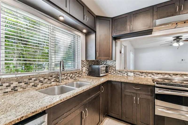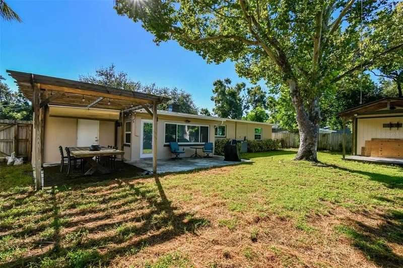 Welcome to this inviting 3-bedroom, 2-bath home set on a generous 80x104 lot. Timeless hardwood floors flow through the living spaces, anchored by a classic stone wood-burning fireplace, a natural gathering spot for cozy evenings. The kitchen blends charm and function with GE Profile stainless steel appliances, double ovens, a farm sink, and solid wood cabinets topped with stone countertops and undercabinet lighting, making a functional cooking space. The primary suite offers a peaceful retreat with two custom closets behind sliding mirrored doors and a private bath with a walk-in shower. Two additional bedrooms include built-in closets and ceiling fans, while the updated guest bath features wainscoting, crown molding, subway tile, and a shower-tub combo with a detachable showerhead. A versatile Florida room, accented with French doors, crown molding, and a wood-paneled ceiling, opens to the backyard, perfect as a playroom, sunroom, or casual lounge. Outside, a circular driveway and single-car garage make daily life easy, while a dedicated laundry area keeps chores tucked away. A shed for additional storage and a covered patio adds a relaxed outdoor living space complete with ceiling fan, TV mount, pergola, patio lights, retractable shade, and comfortable seating, ideal for quiet evenings or lively get-togethers. Peace of mind comes with thoughtful updates, including a newer roof (2024), water heater (2021) and AC (2015). Centrally located for quick access to Tampa’s favorite restaurants, shops, and entertainment, this home balances everyday comfort with inviting spaces to gather and unwind. Schedule your private showing today!