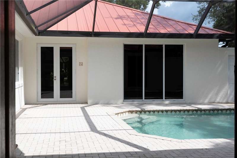 Feel like you're on vacation every day! Now is the time to buy this value priced newly screened courtyard pool home on 1/2 acre cul-de-sac location in highly sought-after Rosewood neighborhood of elegant upscale residences. Plenty of indoor/outdoor entertaining areas in this 4BD/3BA w/new metal roof in 2023, whole house water softener, new paint, adorable separate accessory guest/in-law dwelling, summer kitchen, side entry garage, plantation shutters, & crown moldings. Enter thru gated entrance, passing the tennis court, following meandering lanes to back of neighborhood to your new home!
