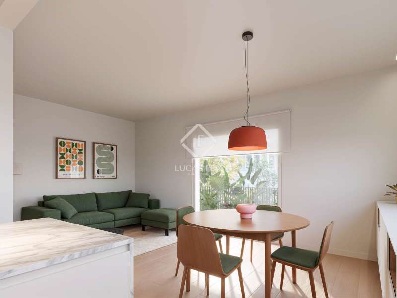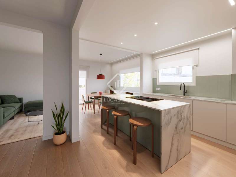 Lucas Fox presents this fantastic property located on the tenth floor of a 1968 building at the intersection of Passeig de San Juan and Calle Córcega. This location is a privilege for those who want to live in the centre of Barcelona, but within a family-friendly, peaceful environment with a high quality of life. Just steps from the emblematic Gracia neighbourhood —with its charming streets, squares, local shops, and restaurants—we find an area where Passeig de San Juan boasts a central pedestrian avenue, free of traffic and with pleasant green areas. The apartment is currently undergoing renovation, with a planned completion date of July 2025. It also offers the option of customizing some of the property's finishes and features. Thanks to its three-way exterior orientation, it enjoys exceptional light throughout the day. Upon entering, we are welcomed by a large open space that houses the dining room living room and a modern kitchen with a large central island, designed for both everyday life and special moments at home. From this area, we access a magnificent terrace of more than 22 m² with pleasant unobstructed views of the city of Barcelona, a perfect space to relax or have fun in company. The property has a functional layout that includes a spacious master bedroom with an en-suite bathroom , as well as two double bedrooms and a second full bathroom . Two of the bedrooms have direct access to a second private terrace of over 13 m², providing even more light and spaciousness to the night area. It also features a laundry area and utility room, as well as the option to rent a parking space in the same residential complex. Located in a highly valued area nationally and internationally, this property represents an excellent opportunity for those seeking an elegant, bright, and well-located property in Barcelona.