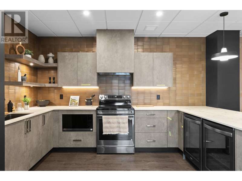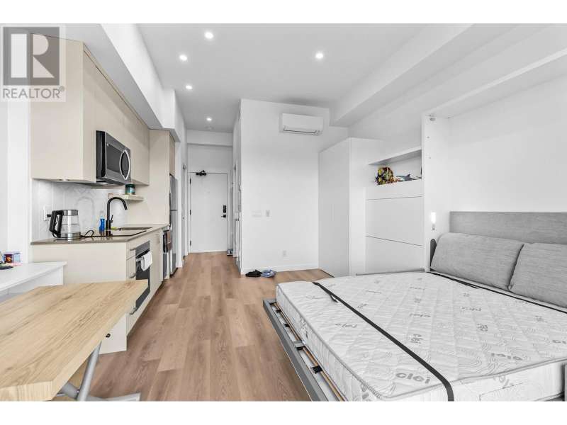 Welcome to Five Crossings—Kelowna’s most innovative and community-focused development, designed for modern, affordable living. This north-facing top-floor, fully furnished ($22,000 upgrade) unit offers incredible value with a bright, open-concept layout, high ceilings, and a private balcony showcasing sweeping city and mountain views. Enjoy a stylish kitchen with quartz countertops, stainless steel appliances, and sleek cabinetry. This unit includes a secure underground parking spot, a private storage locker ($5000 upgrade), and access to premium building amenities including a fitness centre, co-working spaces, a communal kitchen, theatre, pool table, ping pong tables, golf simulator, bike storage with bike workshop, rooftop terrace and more. Barbecues, terrace and community sitting rooms just down the hall from the unit. Located in a central, walkable neighbourhood, you’re just minutes from downtown Kelowna, Okanagan Lake, UBCO’s downtown campus, shops, restaurants, and public transit. Bonus Opportunity: Purchase the neighbouring, side-by-side unit as well—perfect for extended family, rental income, or a flexible investment strategy. Rarely available and ideal for buyers seeking value, location, and lifestyle. Don’t miss out on this move-in-ready, top-floor gem—schedule your private showing today and secure one (or both) of these exceptional units before they’re gone! (id:58403)