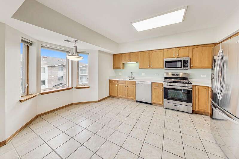 Welcome to 313/717 North 5th Ave, a serene retreat nestled in the heart of Addison, Illinois, tailored for those seeking a tranquil lifestyle in a prime living community. With two generously-sized bedrooms and two full bathrooms, this stunning condominium in Avanti Place exudes elegance and ease, making it an impeccable choice for your next home. Step inside to discover a modern kitchen that is a chef's delight, boasting top-of-the-line stainless steel appliances, gleaming quartz countertops, and a charming dining nook perfect for morning coffee or intimate dinners. The open-concept living room is bathed in natural light and seamlessly extends to a private balcony, where you can enjoy the peaceful surroundings and crisp air. Entertain guests in the formal dining room, which offers ample space for celebrations and gatherings. The entire condo features beautiful wood laminate flooring, adding warmth and sophistication to every step. Retreat to the luxurious master suite, complete with a walk-in closet for your wardrobe essentials, and indulge in the en-suite bath featuring an oversized shower for ultimate relaxation. With a dedicated parking space and an attached garage, your vehicles and storage needs are well accommodated. Experience the perfect combination of comfort and chic living at Avanti Place, where convenience and style are yours to cherish. Act now to secure this exquisite home and elevate your lifestyle to new heights!