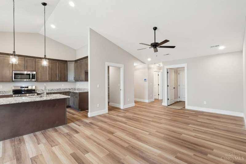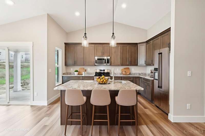 Experience a year-round vacation lifestyle in this brand new, move-in ready ranch! Easy living-HOA covers landscaping, grass cutting & snow removal. Designed for easy access-no steps. Low maintenance-everything is new-no expensive repairs or updates. A home with these upgrades in this community cannot be built at this price. Open design features soaring cathedral ceilings, abundant natural light & upgrades throughout! The kitchen is a chef's dream, with an island, quartz countertops, 42" soft-close cabinetry with crown molding, Moen fixtures, stainless steel appliances & walk-in pantry. Expansive primary suite boasts a huge walk-in closet and a lavish spa bath with a 7ft zero-entry walk-in shower, bathing bench, dual vanities & elegant quartz countertops. Large covered front porch and patio. Cul-de-sac location in a private & exclusive community near university, hospital, shops & parks. Unparalleled convenience & luxury. Fencing allowed! Embrace the ultimate in luxury living today!