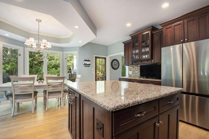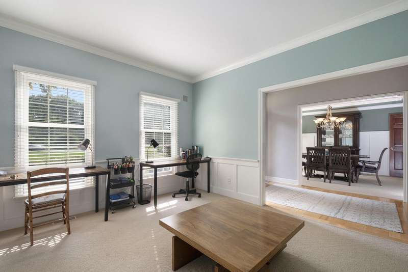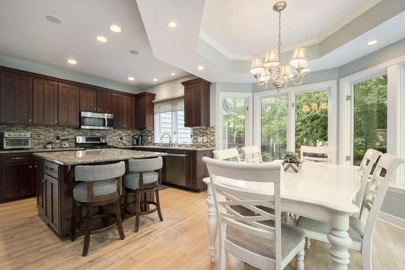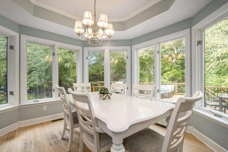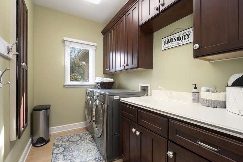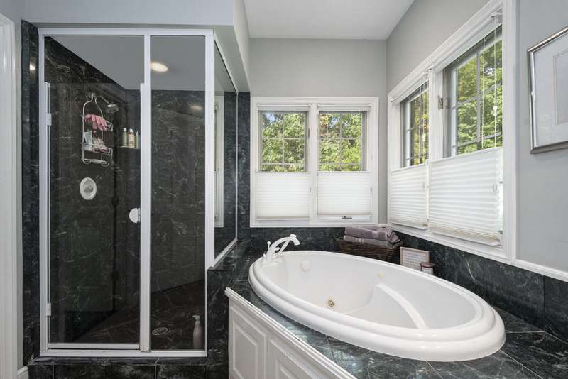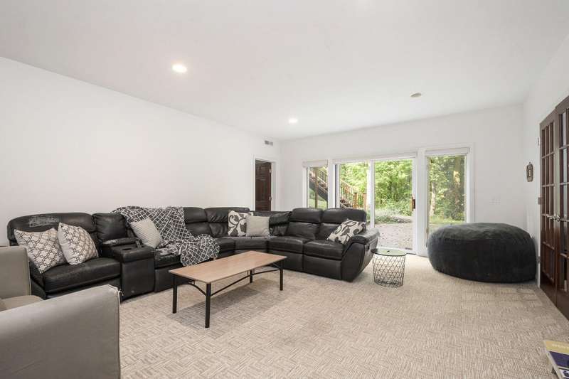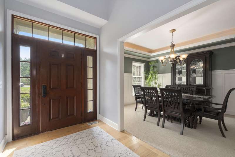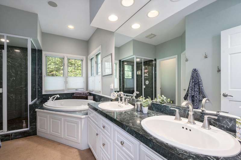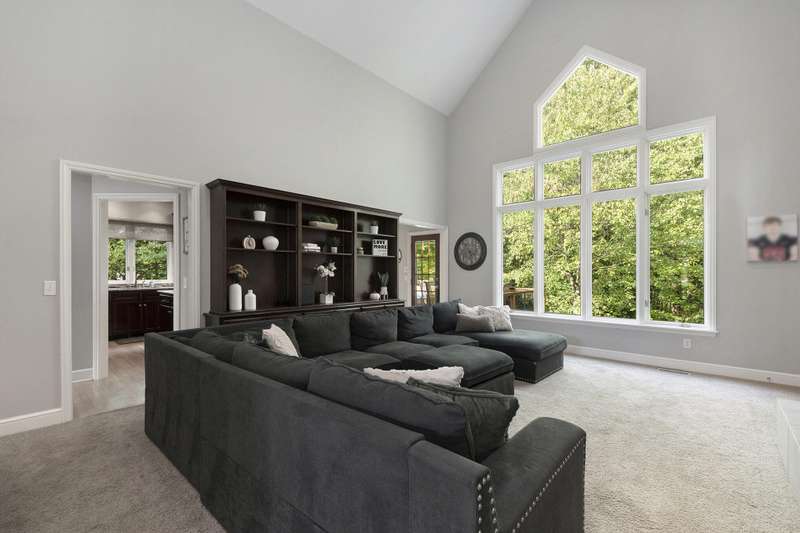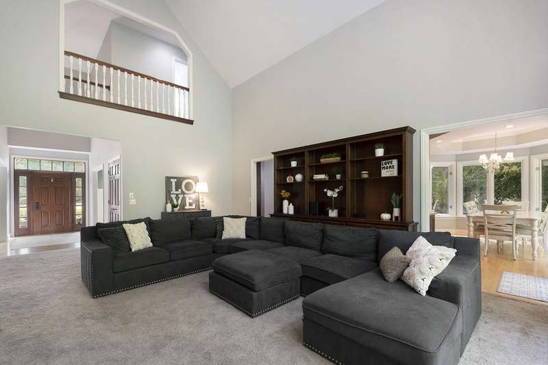 This 6-bedroom, 4- 1/2 bath former Parade Home in Flowers Mill offers a beautiful lot off a quiet cul-de-sac, all the space you could need, and a great location close to schools, shopping, and dining. The large front entryway opens to a formal dining room on one side, and a flex space on the other side that could be used as an office, library, study space, or family room. In front of you is a large living room with towering 2-story ceilings, a gas fireplace, and a wall of windows. A second gas fireplace can be found in the cozy den/office beyond. The kitchen has a big center island, granite countertops, and a bright and sunny dining area. The generous primary suite with a great custom closet is tucked away on one side of the main floor, while a half bath and main-floor laundry round out the other. Upstairs are three large bedrooms - one with its own ensuite bath, and the other two sharing a jack-and-jill bath between them. The lower level is built for fun, with a large rec room, an exercise room, another office/den (currently serving as the poker room), and a walkout to the back yard. There are also two more bedrooms and a 4th full bathroom, along with ample storage space, including a cedar closet. Outside is a beautiful, fully-fenced yard, a patio, a new deck, and a 3-stall garage. There is so much to work with here - it's the perfect canvas to create your dream home!