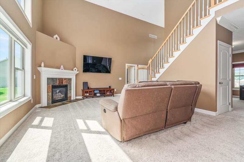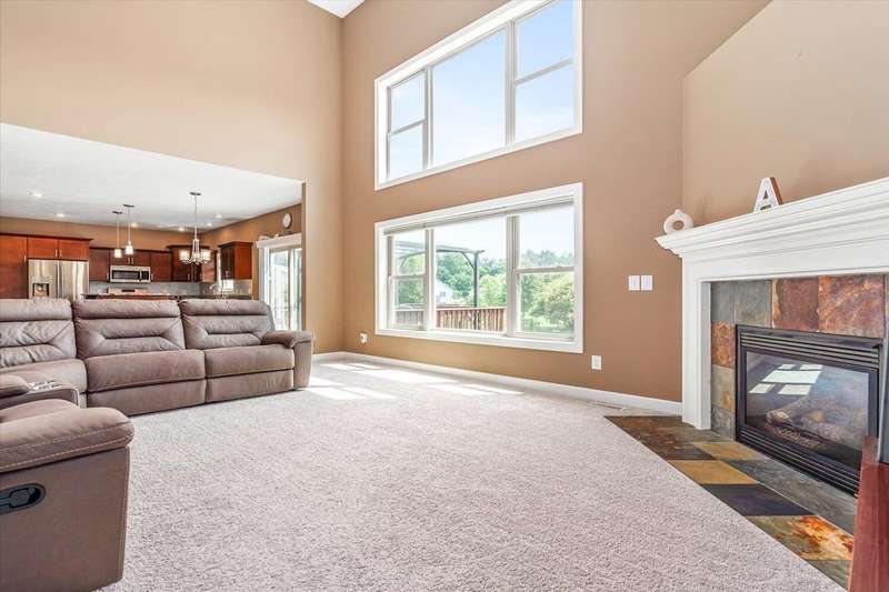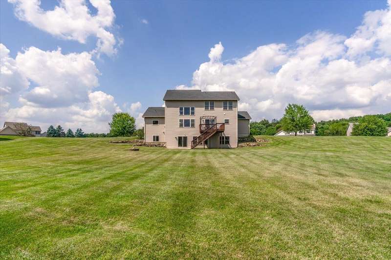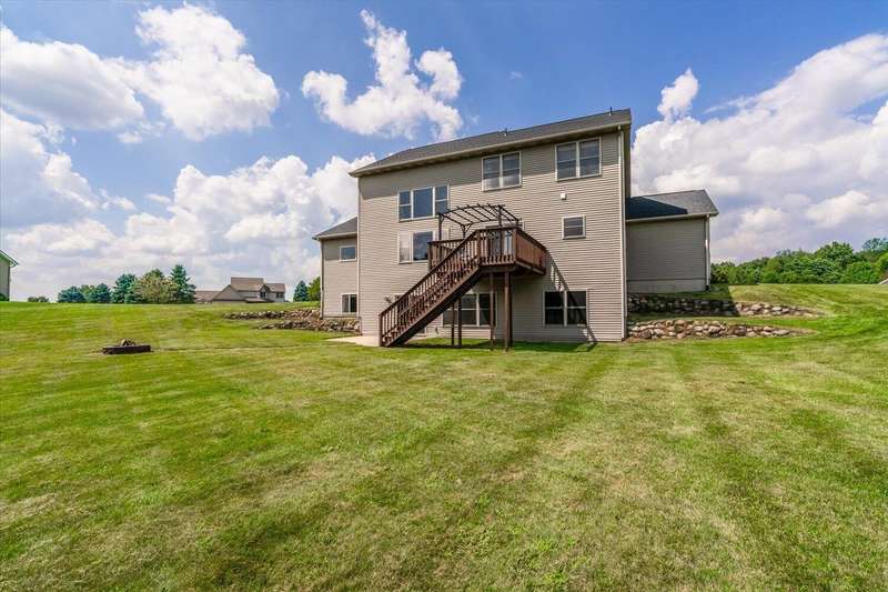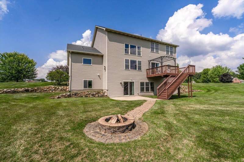 Welcome to this beautiful home in the highly sought after Maplewood Farm neighborhood within the award-winning Mattawan School district! This fabulous home include: Main floor large kitchen w/snack bar at center island, laundry/mud room, cathedral ceiling in liv room w/gas log FP, lovely formal dining room, large primary ensuite; 3 spacious upstairs bedrooms; finished walkout bsmt w/5th BR, rec room, half bath, additional ready to finish room for another BR, and so much bsmt storage; 1.2 acre lot with a large deck overlooking huge back yard, 3 car attached garage, invisible fence, underground sprinkler, fire pit area, generator hookup, MEC fiber & xfinity internet. Many recent updates include paint (2023), New floor LVP & new carpet (2023), HVAC (2019), roof (2022), water heater (2023) and a newer driveway.