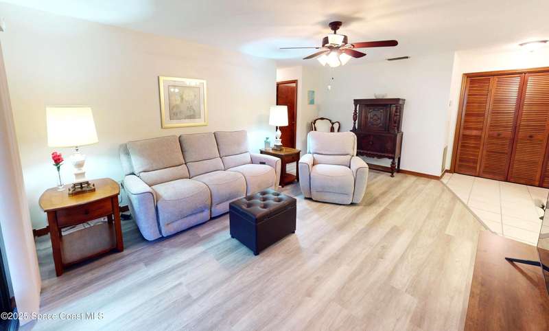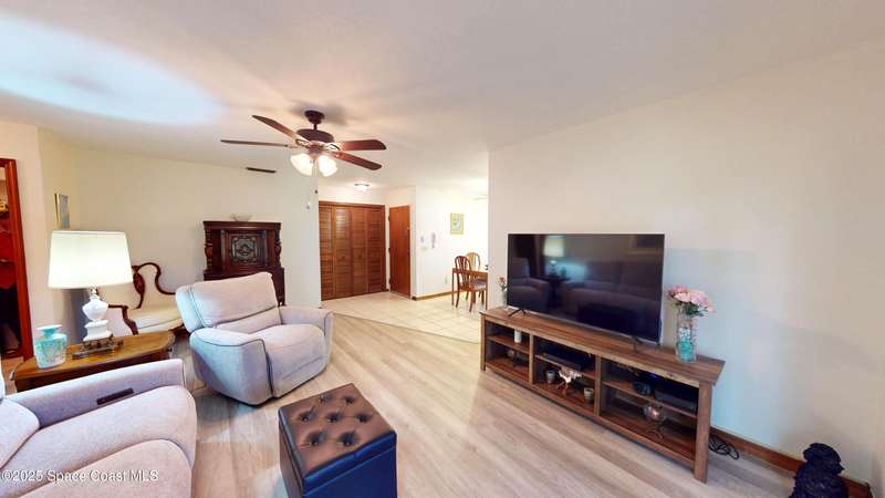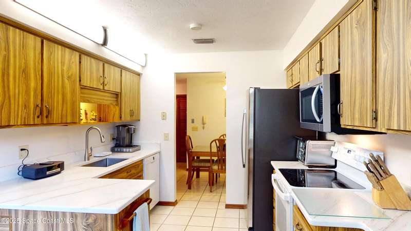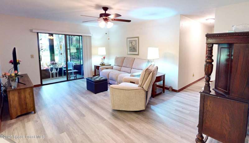 GATED*BEAUTIFUL*GREENWOOD VILLAGE CONDOS! Desirable GROUND FLOOR - END UNIT With LARGER, PRIVATE ONE-CAR GARAGE. Unit Features CERAMIC TILE Flooring In All Wet Areas and LUXURY VINYL PLANK FLOORING (No Carpet). Kitchen Nicely Updated With QUARTZ COUNTER TOPS, STAINLESS STEEL FARM SINK and Newer Appliances. Interior Laundry Room With Newer FULL SIZE WASHER & DRYER and FREEZER - All Remain! Updated Shower In Master Bath, Ceiling Fans In All Rooms, Inviting Screened Porch Provides Serene Views Of Large Park-Like Green Area. AC System New in 2023; Water Heater New in 2020, Newer Storm Door and Garage Door Opener. Don't Miss This Meticulously Maintained Home! Location Affords Convenient Access to I-95, Shopping, Melb.-Orlando Int'l Airport, L3Harris, Northrop-Grumman and FIT. Condo Fee Includes: CABLE TV/DVR/INTERNET, BUILDING MAINTENANCE, PEST CONTROL, HEATED POOL, TENNIS COURTS, HOT TUB, SAUNA/STEAM ROOM, GYM, LIBRARY, RACQUETBALL COURT, CAR WASH AREA, RV STORAGE, INSURANCE AND MORE!