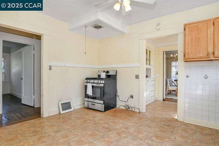 Opportunity knocks with this Spacious & Charming 2-bedroom, 1-bath fixer nestled on a big corner lot. Inside, you’ll find a large kitchen, flex space that can be an office or a dining nook near the formal dining room. Enjoy the light & bright Living Room with the Cozy Wood Burning Fireplace. One of the bedrooms also includes an additional bonus room, offering the potential for a third bedroom, playroom, or private retreat. A dedicated laundry room off of the Kitchen. Charming Built-ins located in the Formal Dining Room & Flex Space. Lots of storage throughout. Huge Basement with even more storage possibilities. Outside, enjoy a spacious yard with room to garden, entertain, or expand. Central Heating. Hardwood Floors. ROOF approx 2.5 years old. The home’s layout feels open with the high ceilings, giving you a canvas to reimagine and make it your own. Walk to Vibrant Downtown Martinez, Farmers Market, Coffee Shops, Restaurants, Breweries and Shopping. Don't miss this opportunity!