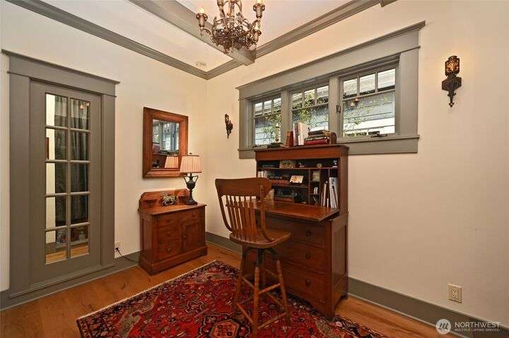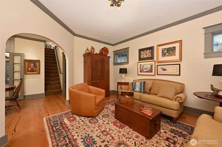 Step inside and feel right at home! This meticulous Queen Anne bungalow blends timeless charm with modern updates. Gleaming hardwoods, arched doorways, & elegant transom windows abound, while the thoughtfully designed kitchen offers ample counter space and high-end appliances. Main floor includes a bedroom or family room, ¾ bath, and office. Upstairs, a skylit primary suite awaits. French doors open out to a romantic patio and fenced backyard. Home is perfectly perched above the sidewalk to provide privacy. Enjoy new systems including A/C, plus a detached garage off the alley. Vibrant location, steps to shops, restaurants, parks, & schools - this gem delivers character and comfort. Don’t miss out on this exceptional opportunity!