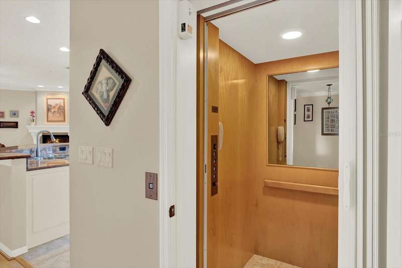 STUNNING 3BR/3BA END-UNIT TOWNHOUSE WITH OVERSIZED GARAGE & PRIVATE ELEVATOR IN SEMINOLE’S SHORES OF LONG BAYOU! Don’t miss this rare opportunity to own one of only 4 luxury townhomes in this sought-after gated, pet-friendly, non-age restricted community! Beautifully maintained, this spacious unit offers GORGEOUS WATERWAY VIEWS from screened balconies on both the 2nd and 3rd floors. The main level features a light-filled great room with crown molding and screened porch access with fabulous WATER VIEWS, formal dining room, full bath, guest bedroom (currently used as a family room) and laundry room. The kitchen impresses with granite counters, stainless steel appliances, abundant wood cabinetry, and breakfast bar. Upstairs, the grand primary suite boasts soaring ceilings, a private sitting area, French doors to a screened patio, 2 spacious closets, and a luxurious en-suite bath with soaking tub and walk-in shower. A 2nd upper-level bedroom and full hall bath provide perfect guest or office space. Additional highlights include a PRIVATE IN-UNIT ELEVATOR, laundry room, generous storage, and OVERSIZED GARAGE with space for 3+ cars, recreational gear, and more. BONUS ROOM on the ground level opens to a covered patio—ideal for a rec room or home gym. Updates include ROOF (2017), Water Heater (2020), NEW IMPACT WINDOWS AND DOORS (2021), 2 HVAC UNITS (2021/2022), and Water Softener. Enjoy the Florida lifestyle with community amenities including two pools (one heated), spa, fitness center, clubhouse, nature trails, and kayak/canoe launch. All just minutes from gorgeous beaches, the Pinellas Trail, Lake Seminole Park, and Seminole City Center offering shopping, dining and entertainment. Schedule your private tour today!