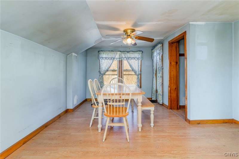 Welcome to the Cottage for the Creative. Perfect place to write that novel that is kicking around in your head or painting your master piece. This little place packs many surprises so do not judge this treasure by it's cover. Driving by is a HUGE mistake. Front porch is ready for your chair. The living room includes a wood burning, stone fireplace that has been used recently. Douglas Fir flooring. Kitchen with Hickory Cabinetry and a five Burner, Samsung, propane stove. Counter space that a serious cook will appreciate. Or add a microwave and air fryer and be happy. Space beyond the kitchen is yours to create. Bathroom on the first floor. While the tax records list the house as having two bedrooms, the banks will state that it is a one bedroom home in the current configuration. Additional surprises include a 200 amp electric box and some new wiring, Roof is only 15 years old, newer windows, new pressure tank and new well pump. Garage and Shed (electric source for shed only). Wait for surprises as the gardens will have flowers growing.Propane Tank for heating water and cooking was leased. It is no longer on the property.The well was originally identified as being a dug well is being modified. It is a pounded well. While it originally was a dug well, later a casing was added, pounded in and sealed. The well driller is providing a detailed explanation in writing.House being sold in "AS IS" condition.Location is perfect for easy access to other areas. Marcellus with cute shops and restaurants is about 15 minutes away. Skaneateles is 15 minutes away with additional shopping and restaurants to discover. Homer has restaurants, shopping and theater is 30 minutes away, convenient to Route 81. Boat Enthusiasts will find the NYSDEC Boat Launch in Spafford is a 15 minute drive. See for yourself what makes Spafford, Someplace Special.