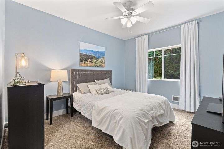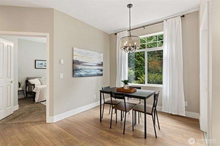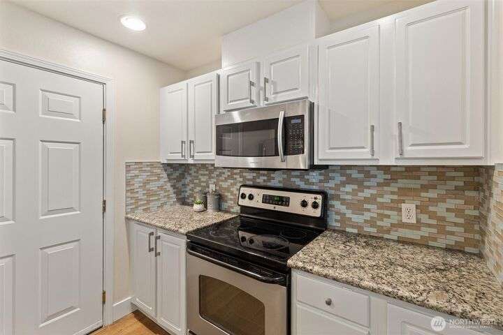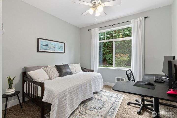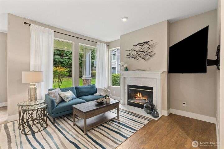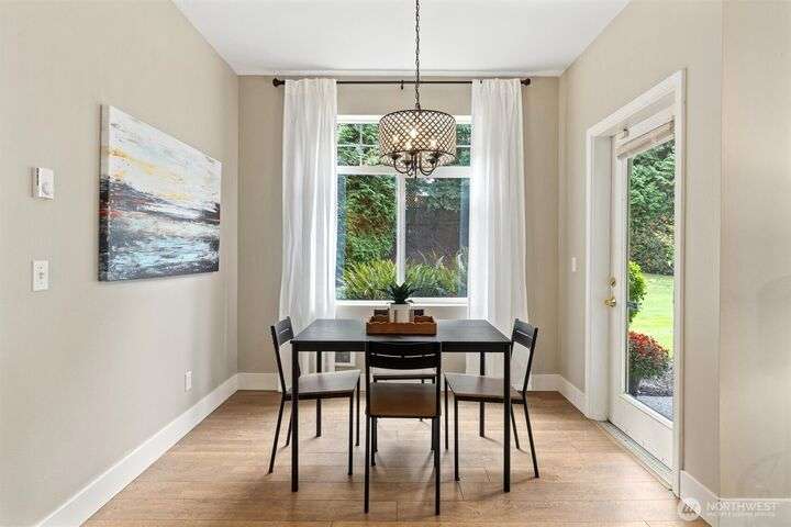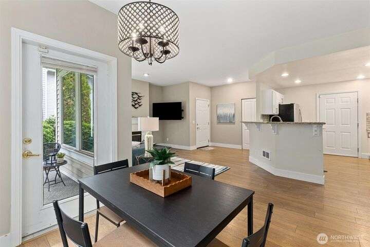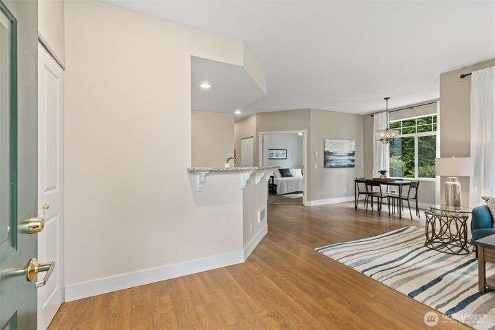 Bright and spacious ground-floor end unit in The Arbors! Enjoy true zero-step access from your attached garage—no stairs anywhere, making daily living easy and convenient. The open layout features 9-foot ceilings and oversized windows that fill the home with natural light. Nicely updated and move-in ready, with durable hard-surface flooring and carpet in both bedrooms. The kitchen shines with slab granite counters and stainless steel appliances, seamlessly connected to the living room. The generous primary suite offers a dual-sink vanity and walk-in closet, while the second bedroom works well for guests or a home office. No rental cap—great for homeowners or investors!