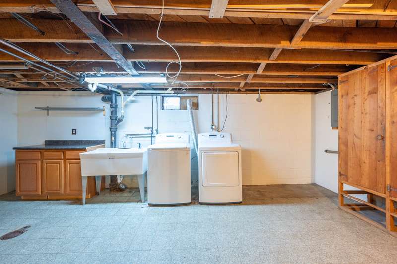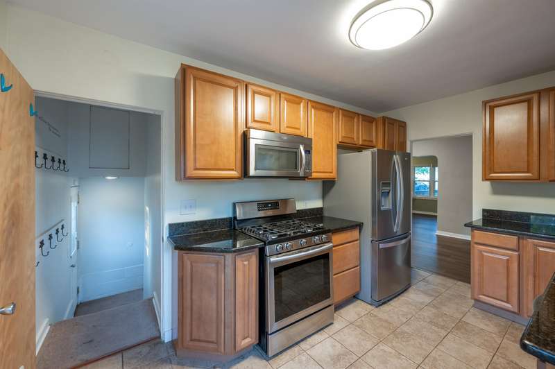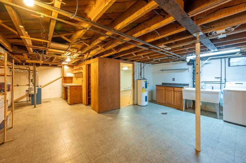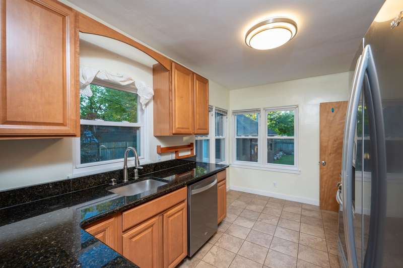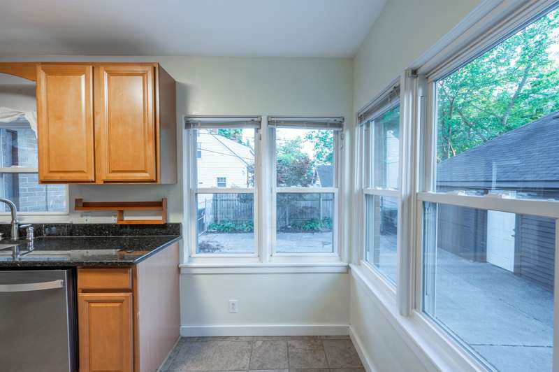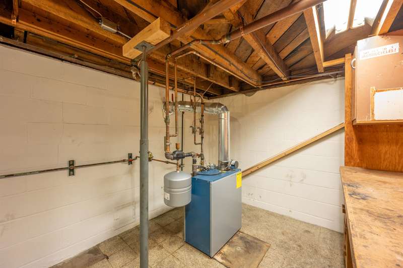 Welcome to this beautifully maintained 3-bedroom, 2 full bathroom home that perfectly blends classic charm with thoughtful upgrades. Step inside to find a spacious layout featuring a large dining room ideal for gatherings, and a partially finished basement offering a generous living space plus ample storage options. The updated kitchen is a true highlight, complete with sleek granite countertops, modern appliances, and plenty of cabinet space — perfect for any home chef. Both full bathrooms have been tastefully updated, offering a fresh, clean look. Luxury vinyl plank flooring has been installed throughout much of the home, providing a modern aesthetic with durable, low-maintenance appeal. Enjoy your morning coffee or relax in the evenings on the inviting composite front deck. Recent updates provide peace of mind, including a new sewer line (2012) and a high-efficiency boiler (2014). Outside, you'll find a detached garage with space for a workshop or extra outdoor storage.