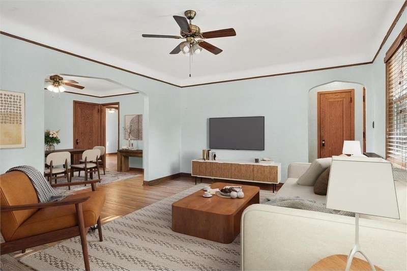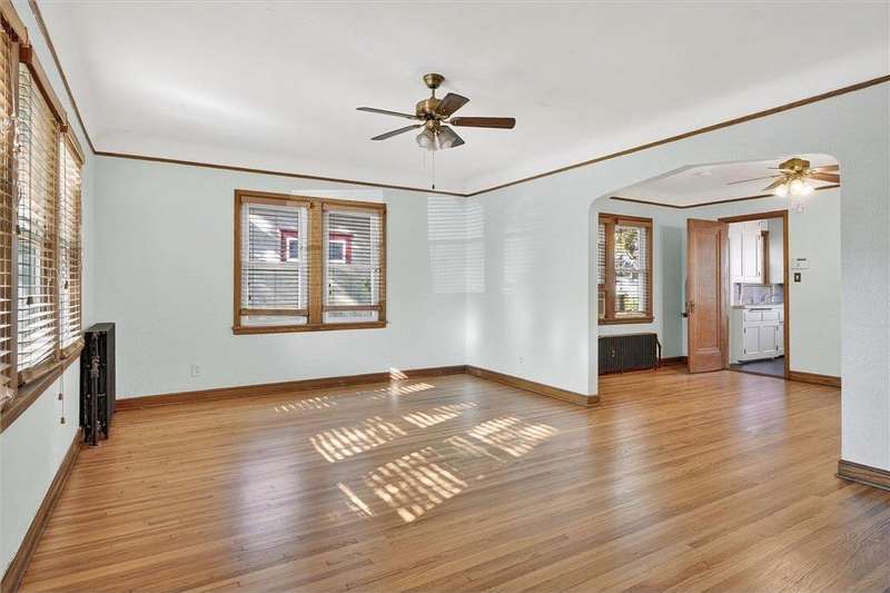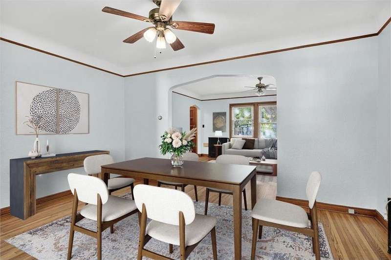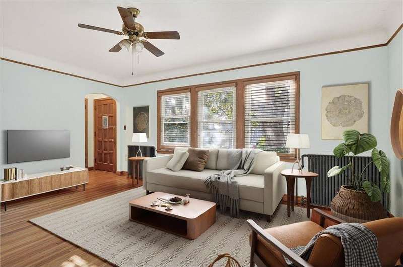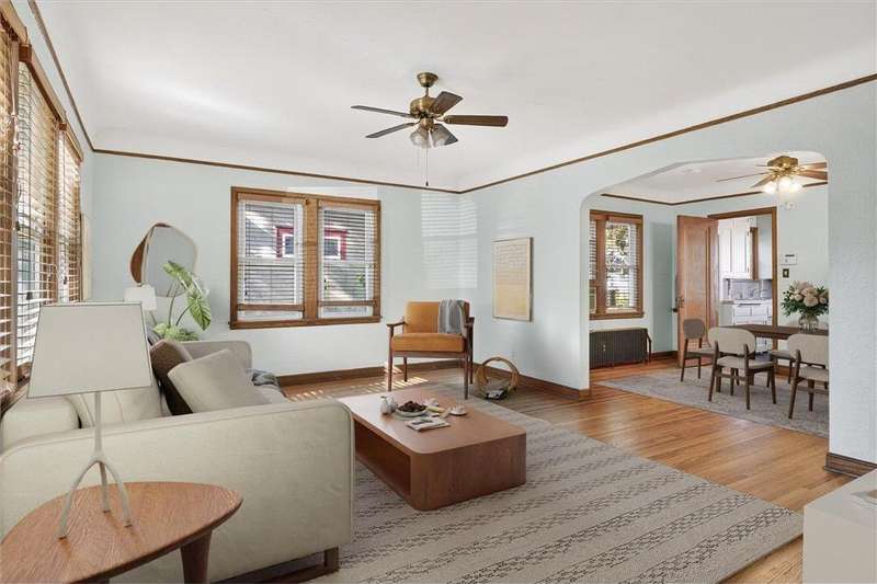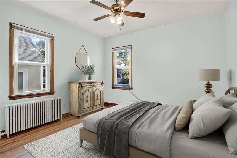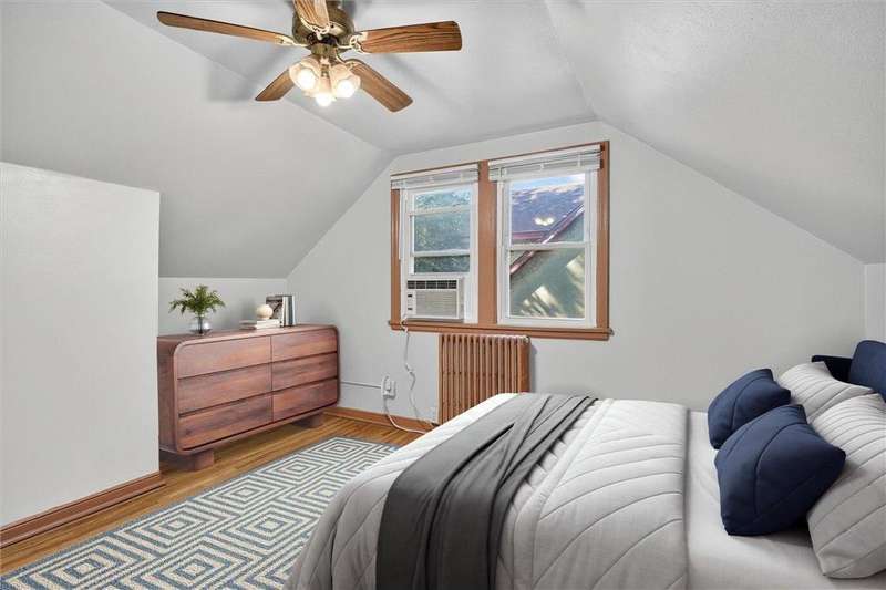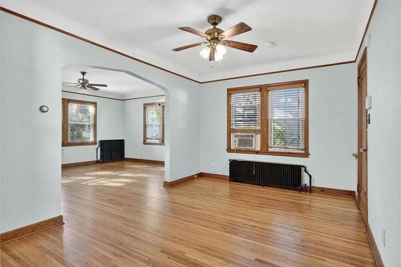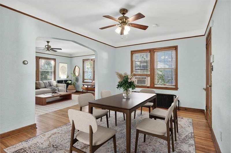 Spacious 4 bdrm 2 full bathrm 2 story with large deck and level backyard. Nice curb appeal stucco exterior and lots of vinyl double pane windows and stucco exterior. Main level boasts hardwood floors throughout, spacious Living and Dining Rooms w/large Kitchen and 2 Bdrms with full Bathroom. Upper level: hardwood floors, 2 more Bdrms with full Bathroom. Finished lower level with large Family Room, Office/Hobby rooms, Laundry romo area with plenty of storage space. Many original doors w/glass knobs and nice woodwork. One car garage with plenty of extra parking off the alley in back. Short walk to Hamline Green Line Station and Target and other shopping.