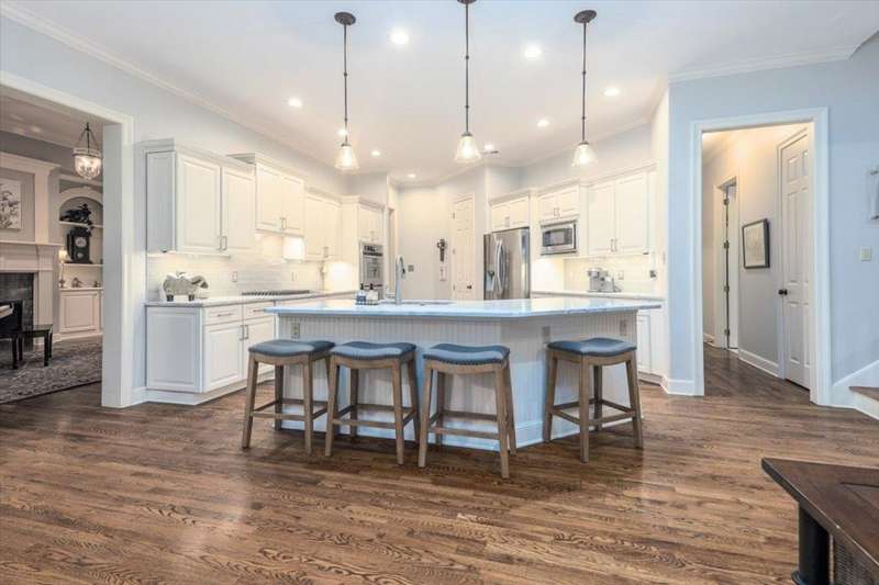 Welcome to this beautifully updated 5-bedroom, 4.5-bath home nestled on a quiet .58-acre cove lot, offering the perfect balance of space, style, and comfort. The updated kitchen flows seamlessly into a spacious hearth room, creating a warm and inviting space for everyday living. Breakfast area overlooks the pool. A formal living room and dining room provide elegant spaces for entertaining, while the modernized baths and spacious, open layout elevate the home's appeal. Huge primary with a gorgeous renovated bath! Two bedrooms on the main level. Oversized bonus with a pool table. Step outside to your own private retreat featuring a sparkling mineral pool and screened-in patio?perfect for relaxing or hosting year-round. Located in a sought-after neighborhood with outstanding amenities including a clubhouse, multiple community pools, and playgrounds, this home offers resort-style living right at your doorstep.