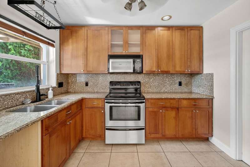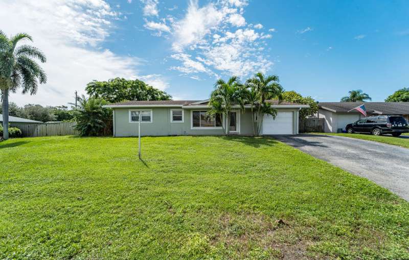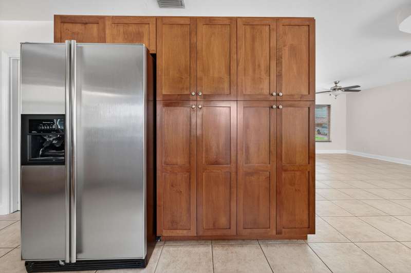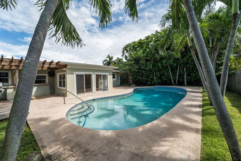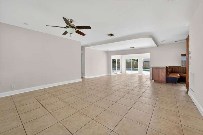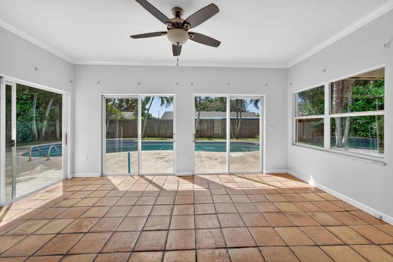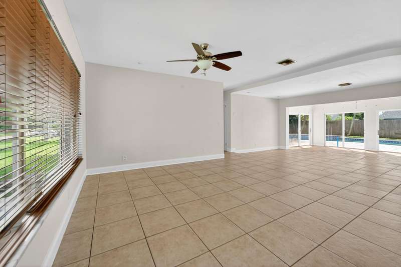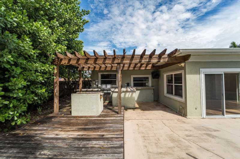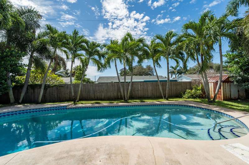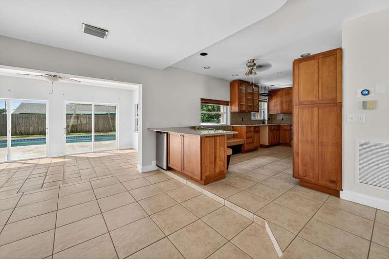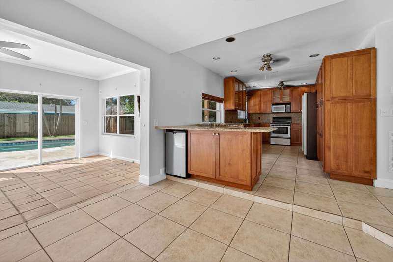 Fabulous pool home with 2 bed/ 2 bath & attached garage. Tile & Laminate flooring. Spacious Florida Room. Kitchen has built-in breakfast area, granite counters & SS appliances. AC 2020. New Hot Water Heater 2024. New Pool Pump. Great private backyard with plenty of outdoor space for entertaining, outdoor kitchen area & storage shed. Fenced yard. NO HOA fees!Hurricane protection. Front door is Impact.Convenient location close to beaches, restaurants, shopping, schools, hospital.