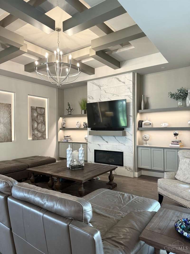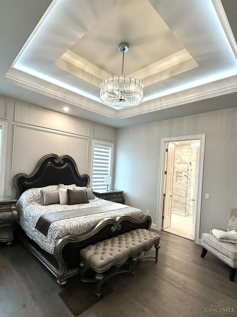 Bayshore Plan by John Candle Homes, Homearama Builder. Faces North. Features include hdwd floors, Wainscoting, 10ft ceiling, handmade beam ceiling, wide trim. Kitchen offers SS appliances, walk-in pantry, large island. Great Rm features giant disappearing glass wall open to 20x12 covered patio and courtyard. Upstairs bdrms include ensuite baths. Home is fully loaded w/upscale selections. Primary bdrm has large 10x9 walk-in closet. Finished basement is optional. Treed view. Snow removal and grass cutting & mulching covered by HOA. Mason Schools. Walk to new Dorothy Lane Market and park.