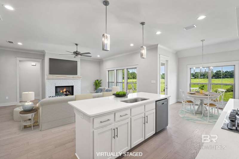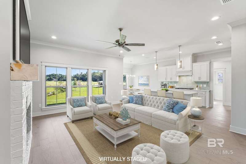 Move in Ready! Welcome to the Linden floor plan, a thoughtfully designed home by Tower Homes, located in their new, builder-exclusive Patch Place subdivision. On lot 6 and backing up to the common area, this beautifully crafted residence offers the perfect blend of comfort, style, and southern charm in one of the newest subdivisions in Daphne. Featuring 4 spacious bedrooms, 2.5 baths, and a flowing open-concept layout, the Linden is ideal for entertaining or simply enjoying life at a more relaxed pace. The chef-inspired kitchen includes quartz countertops, stainless steel appliances, including a gas cooktop, a built-in wall oven and microwave, a dishwasher, a walk-in pantry, and a large kitchen island with a breakfast bar. The kitchen overlooks the dining room and inviting living room with a cozy brick, gas fireplace perfect for hosting or unwinding. The primary suite is a private retreat with a spa-like 4 ft walk-in shower, dual vanities, a freestanding soaking tub, and 2 expansive walk-in closets. Two additional bedrooms downstairs each offer generous space and their own large closets, sharing a beautifully appointed full bath. Upstairs, you will find bedroom 4 with an ample closet and generous floor space. Enjoy the best indoor-outdoor living with a welcoming front porch and a covered back porch, ideal for sipping coffee or watching sunsets. A XL laundry room, drop zone, and ample storage space ensure convenience. The 2-car garage provides ample space for vehicles, golf carts, or additional storage. Patch Place is a 64-lot subdivision located just off CR 13 at the end of Parker Ln. it is minutes from I-10 and is close to schools, shopping, parks, and more. Gold Fortified, the home includes a 1-yr builder warranty, 10-yr PWSC structural warranty, and a 1-yr. Termite bond. One or more principals of the selling entity are licensed real estate agents and or Brokers in AL. Est. Some photos are virtually staged. Buyer to verify all information during due diligence.