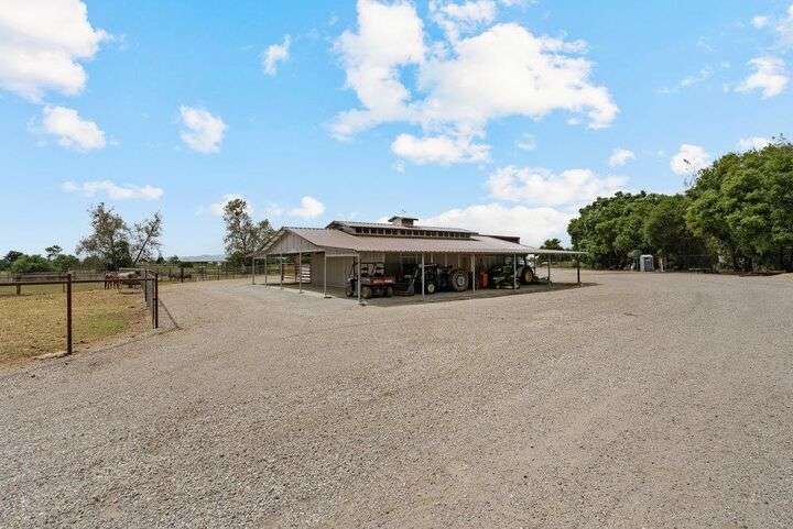 Welcome to this rare opportunity to own a beautifully maintained and versatile income producing property set on just over 22 acres of fully deer-fenced land. Perfectly suited for equestrian enthusiasts, agricultural ventures, or those seeking a peaceful rural lifestyle, this estate offers a wealth of features and income-generating potential. The property includes a covered arena with a sand base, complete with a cow truck, cattle run, and holding pens, as well as an overhead sprinkler system to minimize dust. Adjacent are two large, fully fenced and irrigated pastures, ideal for grazing and training. For your livestock and equipment needs, there is a three-stall barn plus tack room and workshop, pole barn, and a nicely updated front barn that blends functionality with charm. A standout feature is the income-producing olive orchard, covering just over 12 acres and planted with Arbequina and Arbosana olive trees, known for their high-quality oil production. Water is abundant, with five wells servicing the property, including a blue valve with its own filtration system, and a 500-gallon on-site diesel tank to support operations. This property provides the infrastructure, space, and privacy to bring your dreams to life.
