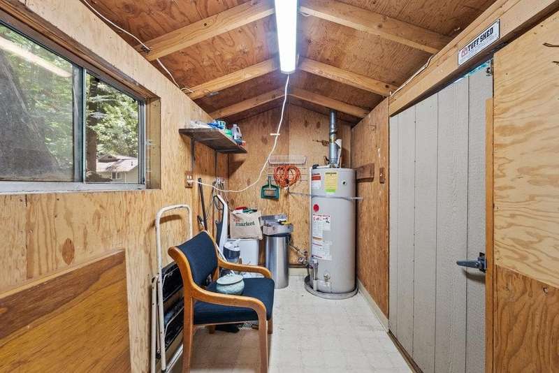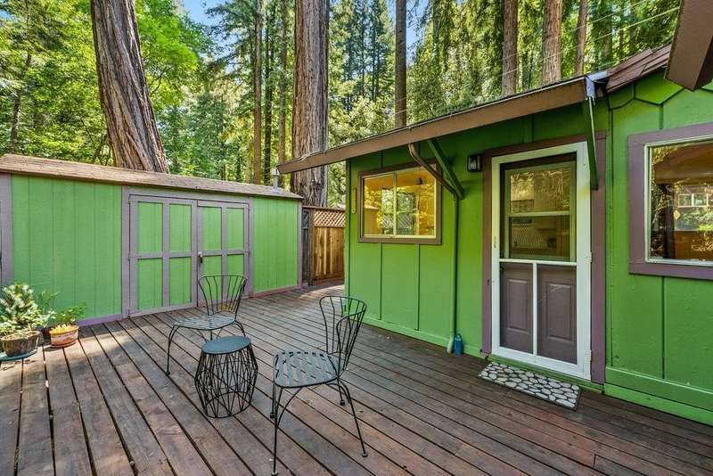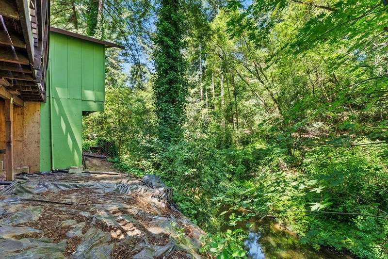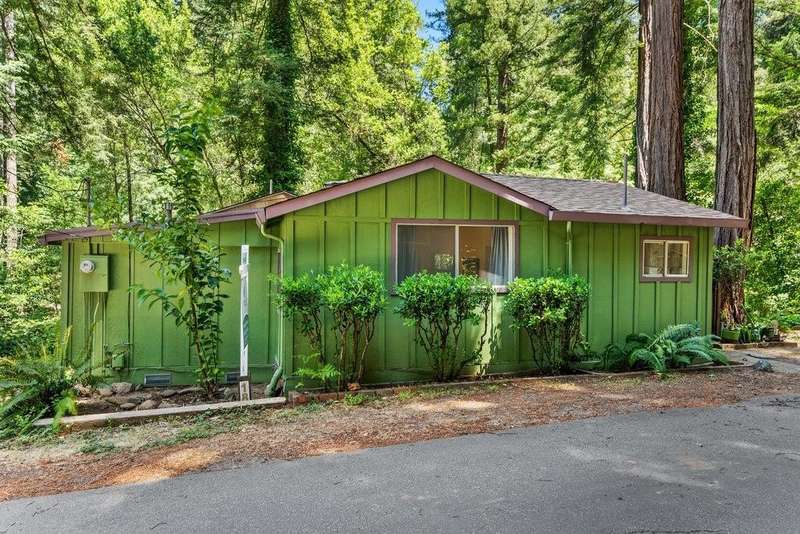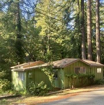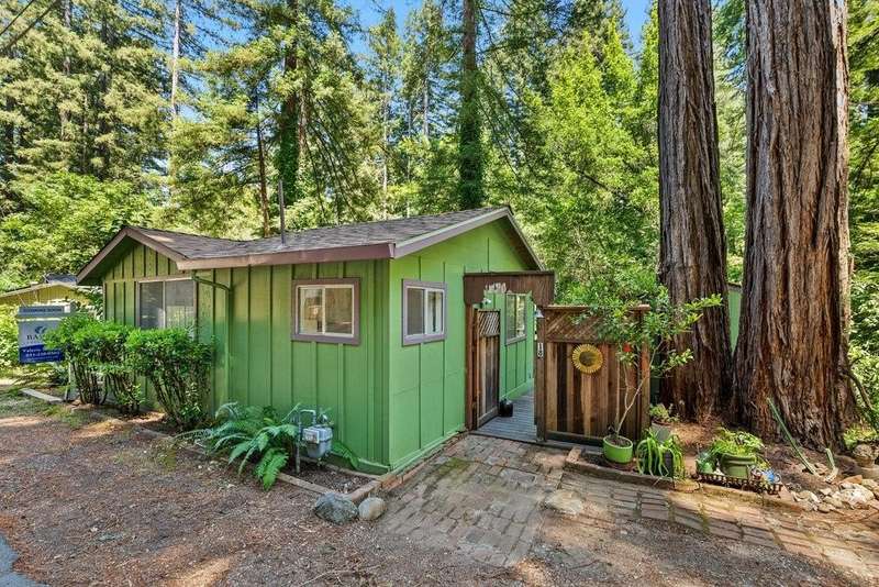 1930s cabin in the woods. This 2 bed, 1 bath Cottage on Bear Creek. It is in a Stock Coop: 24 homes share 12 acres. The fixer upper could use a new roof, AS IS, upgrade the rest to your taste. Summer is warm in the sun, and cool in the house with cross breezes through the trees. The vintage stove, and rock and brick hearth in the living room, may be part of the charm to keep. Enjoy the fenced private deck overlooking Bear Creek, and storage shed with Washer Dryer hookups. Is it an office space, studio, or simply storage in your future home? Walk into Boulder Creek, commute to the North cities, or Santa Cruz. Low HOA covers water, garbage, road & common area maintenance, clubhouse, BBQ area, and private trails to the Creek Beaches & arborist. Bear. Creek Stock co-op. requires ALL CASH or non conventional loan, ask me about it. Park Approval required. Ideal for a permanent residence or second home.
