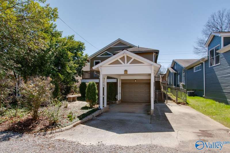 5 Points Historical Area Architect Designed Bungalow built in 1991. 4 Bedrooms, 3 Bath Bungalow minutes from downtown Huntsville. Master Bedroom has two walk-in closets, dressing area, double vanity, separate shower and tub. Home has great Closet and Storage Space. Two Bedrooms down and two bedrooms up with loft area. Two fireplaces, hardwoods, large front porch, alley access with single car garage and carport. 14x21 storage area. Trex decking, sprinkler system and much more. Deck off Master overlooks shaded courtyard. Call your Realtor today to see this lovely home.