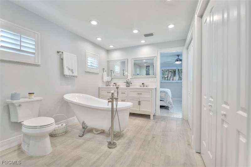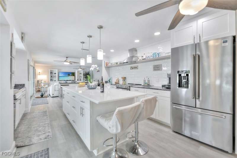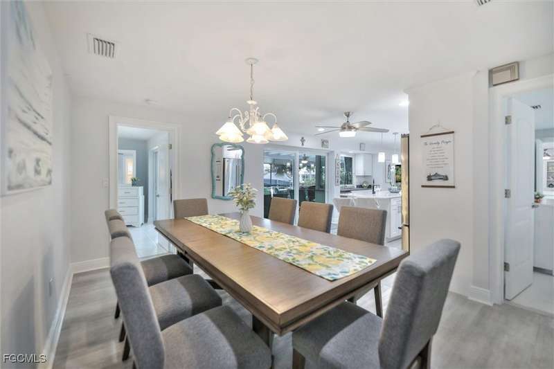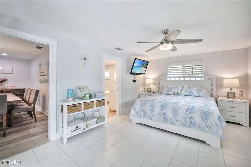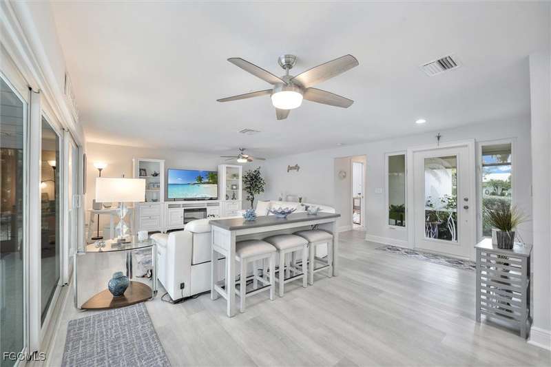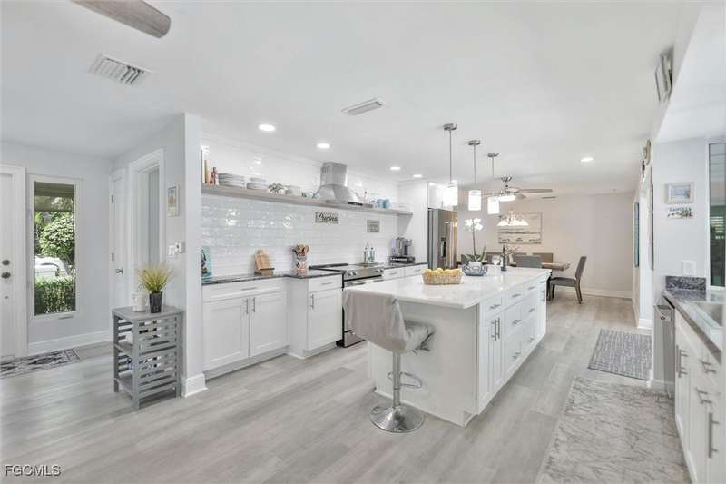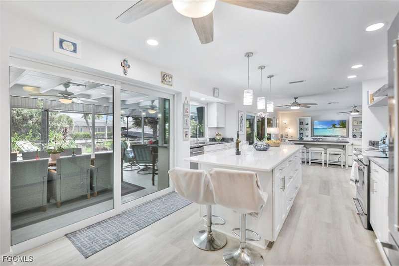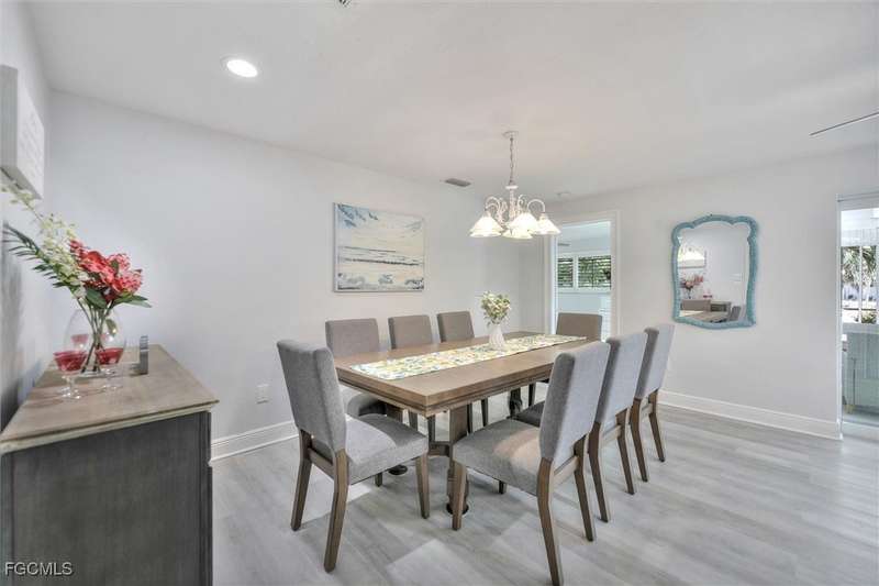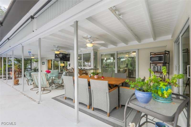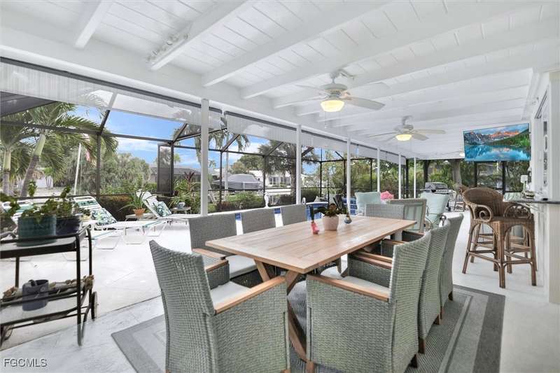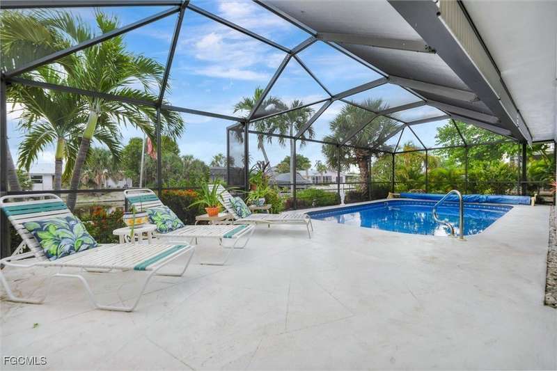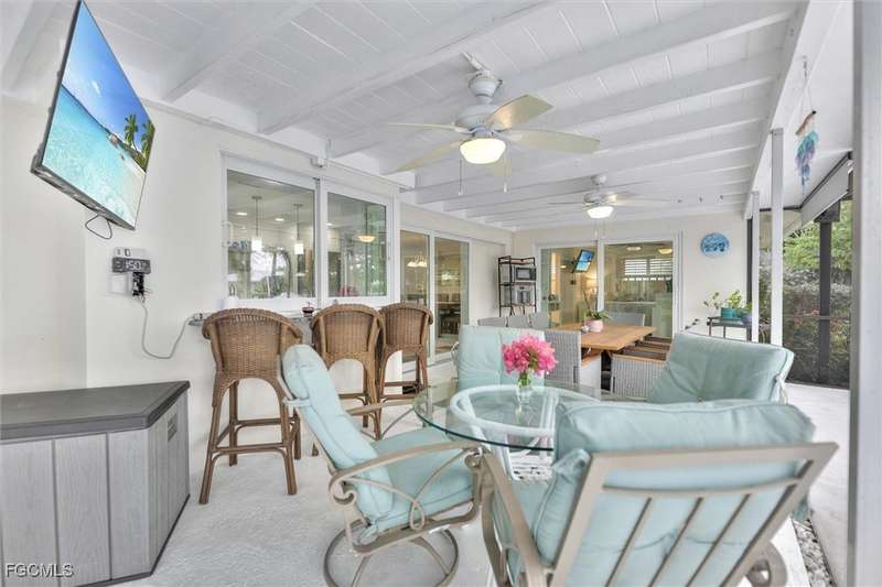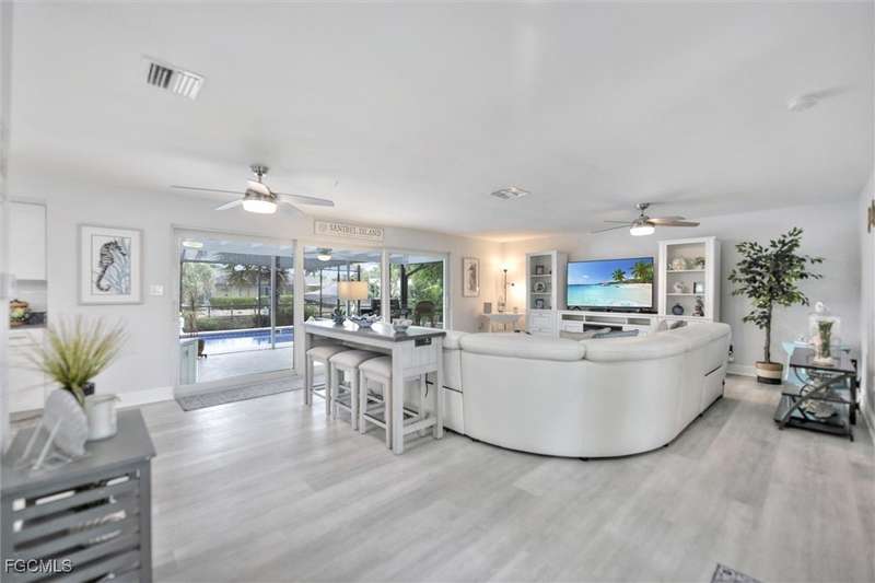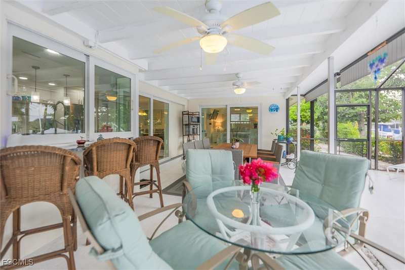Welcome to this beautifully designed and coastal inspired canal home on Sanibel Island. A perfect east end location which is nestled on a wide canal with quick access to the Gulf of Mexico. This gorgeous open concept floor plan offers the ultimate in island living. A perfect for a vacation home or full time living residence! You will love the spacious and inviting family room, soothing primary bedroom with the spa like bathroom featuring a walk-in shower and free standing bathtub, two comfortable and private guest bedrooms, well-appointed guest bathrooms, good storage and a two car garage. Fully updated including all impact windows and doors, a newer metal roof, new A/C and tropical landscaping. The custom kitchen offers a large island, lots of cabinets, Quartz/grantie countertops, stainless appliances, and a separate dining room for entertaining. Every detail of this home has been thoughtfully planned Step outside to a refreshing pool, large screened lanai, and a delightful dock where your neighbors are dolphins and manatees. A short walk to the beach or park in the deeded beach parking lot. Sanibel is known for it's fabulous bike paths, boating & water sports, world class shelling, white sandy beaches, azure waters, themed restaurants, quaint shops, abundant wildlife, and a quiet, low-key atmosphere.
