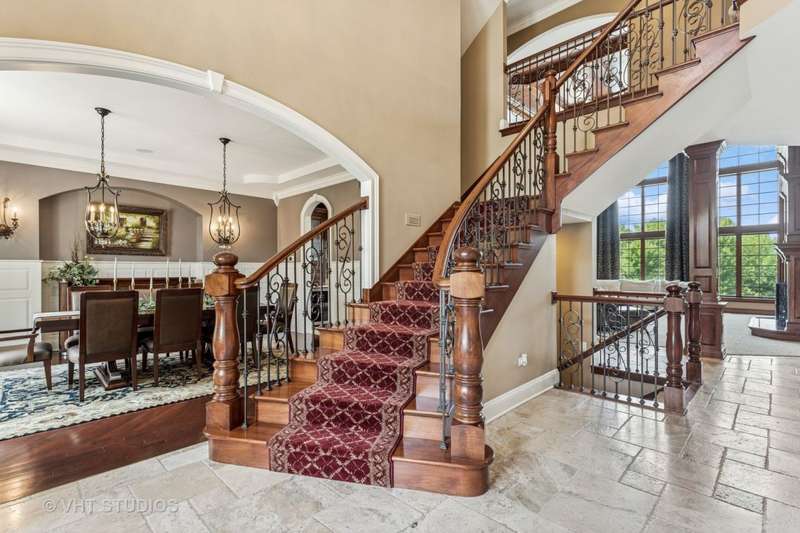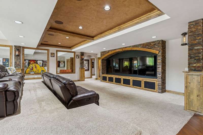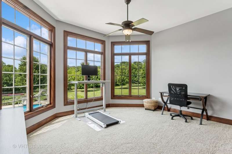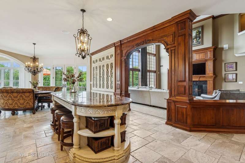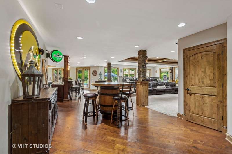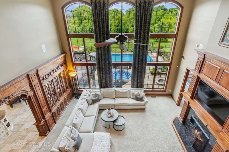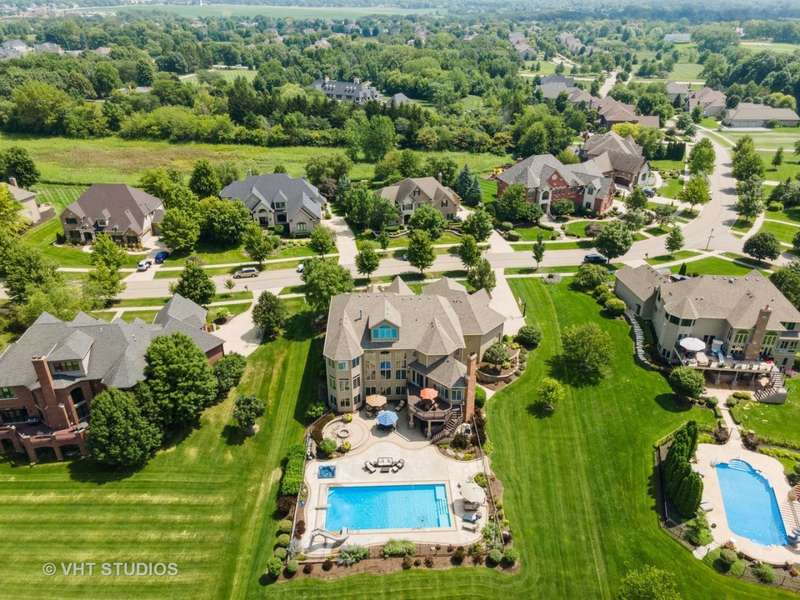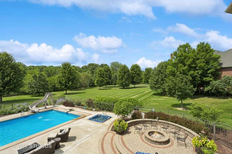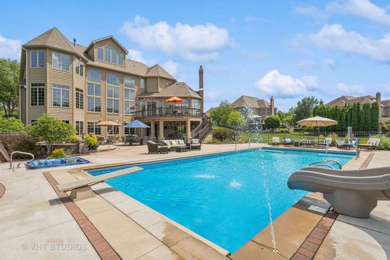 Welcome to 931 Lusted Lane-an extraordinary, custom-built estate in Batavia offering approx. 10,000 sq ft of luxurious living and entertaining space on nearly an acre. This stunning 7-bedroom, 6.2-bath home features a heated, oversized 4-stall garage with built-in shelving, a Control 4 whole-house automation system, and a resort-style backyard complete with a 22' x 48' inground pool with slide, fountains, lighting, diving board, projection screen, hot tub, gas firepit, and built-in grill/bar. Inside, the chef's kitchen is a dream with Viking appliances, dual islands, granite countertops, natural travertine flooring, raised panel cabinetry with crown molding, a custom wet bar, and a butler's pantry. Elegance abounds throughout with five fireplaces (three gas, two wood-burning), a breathtaking two-story walnut staircase, walnut flooring and millwork, a formal dining room with deluxe wainscot and colonial embossed ceiling, and a family room with soaring ceilings, a gas fireplace with hand-crafted surround, and a built-in curio cabinet. The primary suite is a retreat with vaulted tray ceilings, a gas fireplace, built-in curved television, and a spa-like bath with a two-person shower with massage jets, a Jacuzzi tub, heated floors, dual vanities, stereo speakers, and a hidden TV behind the mirrors. The finished basement is a true showstopper with a custom granite bar, five-screen TV entertainment center with remote switching, a wine cellar, elevated TV room, cove ceiling over the pool table, wood-burning fireplace, surround sound theatre system, and storage room with shelving. Additional highlights include Anderson casement windows, Schlage locks, ADT security, mudroom, in-ground sprinkler system, cedar siding with Trex deck, and a new 40-year roof (2020). This exceptional home offers the ultimate in luxury, comfort, and entertaining-inside and out. Tanglewood Hills offers a spacious clubhouse with a commercial kitchen, large pool and a separate children's pool, in addition to basketball, pickleball, and tennis courts, playground, and scenic trails. Served by top-rated Batavia schools-with Grace McWayne elementary in the neighborhood. Minutes to Randall Road's dining and shopping, plus easy access to I-88 and Metra.