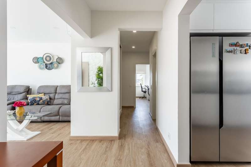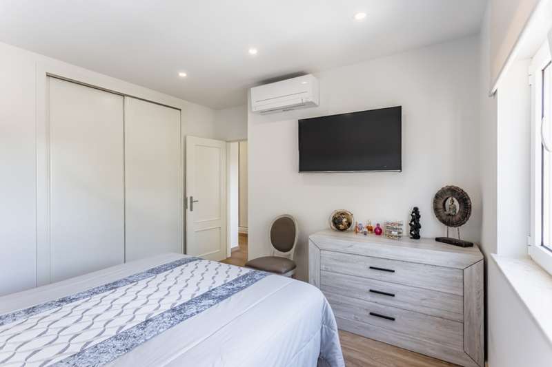 Refurbished 3-bedroom apartment on the second floor of a building with a total of five apartments, located in Lagos, Algarve, close to the renowned Meia-Praia. Upon entering, this apartment offers a corridor that runs the entire length of the apartment. To the right is the large, modern, fully-equipped kitchen, with built-in appliances and a granite worktop with plenty of space for storage and preparing meals. Also in the kitchen, you might be surprised by the laundry room with storage space, which is disguised by the cupboards. The spacious living area, equipped and furnished, has access to the balcony, which is equipped with a barbecue. At the end of the corridor are the three bedrooms, one of which is en suite and has a balcony. There is also a bathroom halfway down the corridor, equipped with a shower. The bedrooms, as well as the living room, have air conditioning. This property has a shared roof terrace where you can enjoy the mild climate and fantastic sea views. Located just a few minutes from Lagos city center, the apartment gives you access to beaches, services, shops, cultural and leisure activities without having to do long distances. This apartment also has excellent access to the N125 national road and the A22 highway. Faro International Airport is 50 minutes away. CHARACTERISTICS:Area: 136 m2 | 1 468 sq ft Useful area: 92 m2 | 988 sq ft Bedrooms: 3 Bathrooms: 2 Energy efficiency: C FEATURES: Refurbished 3 bedrooms Equipped kitchen Balcony Laundry room Barbecue Air conditioning