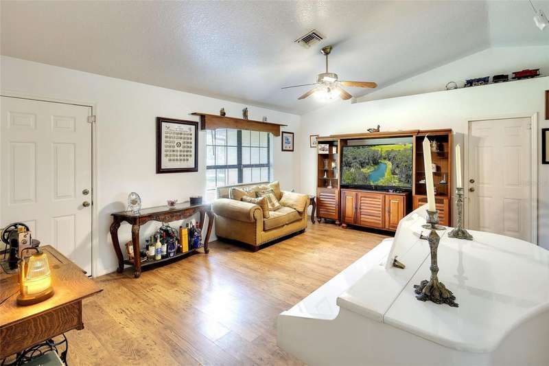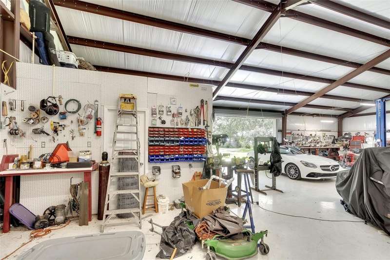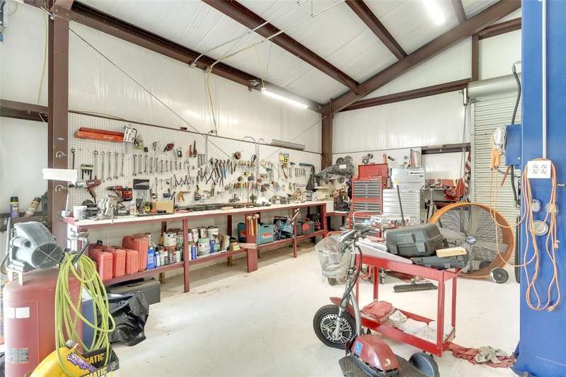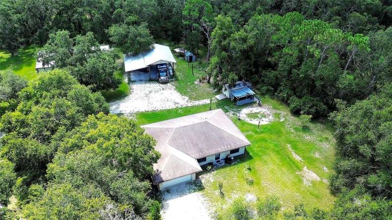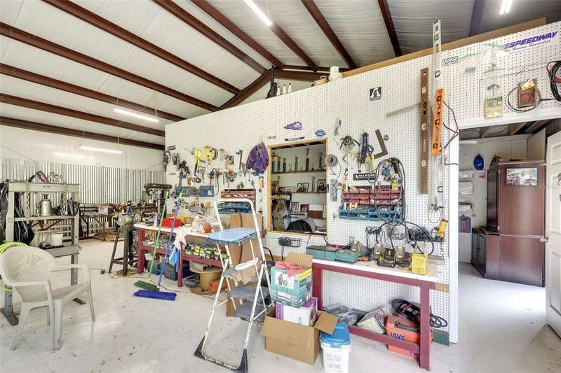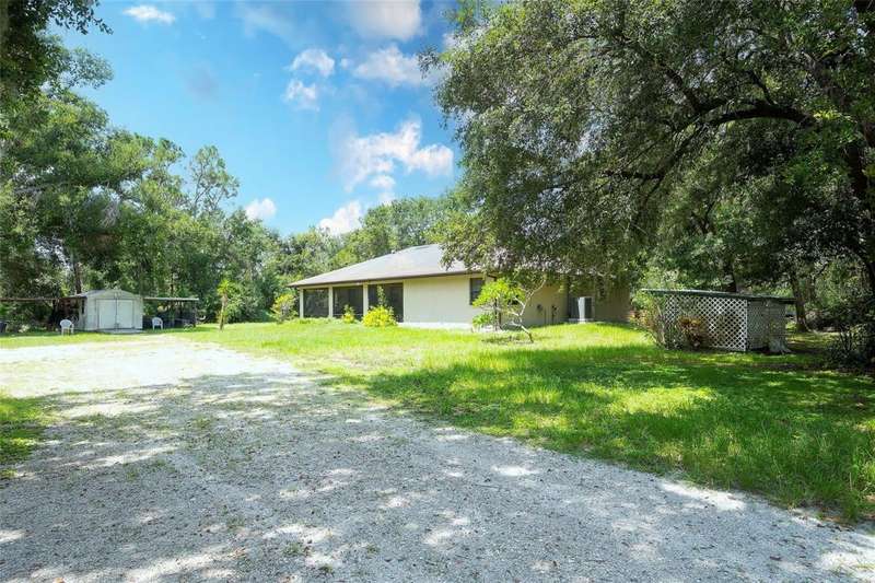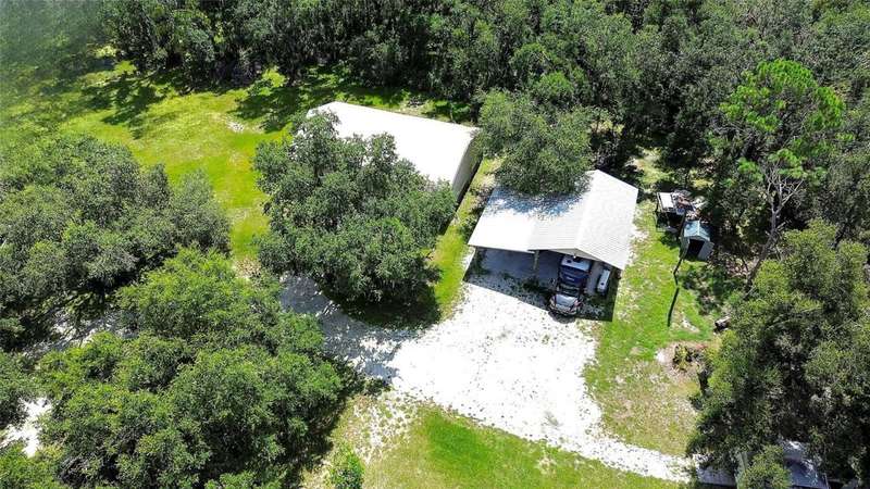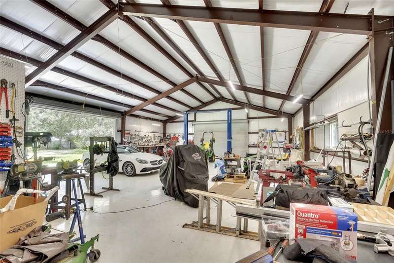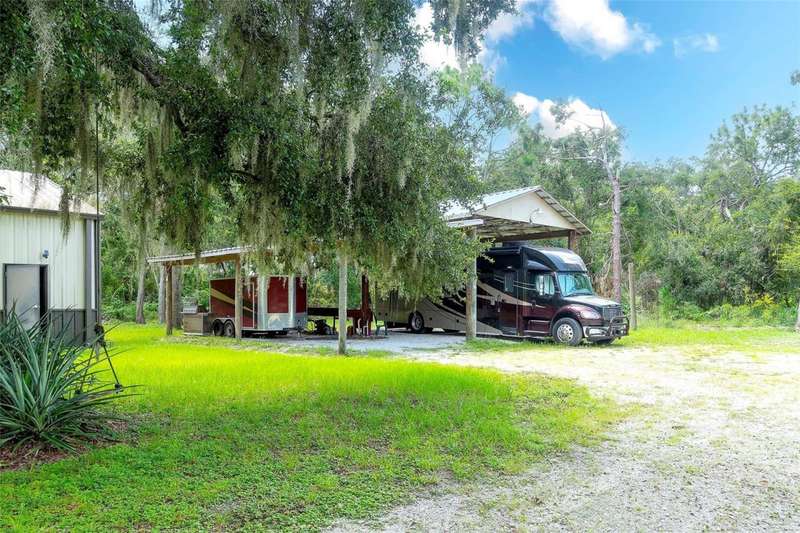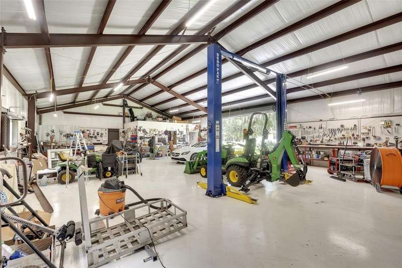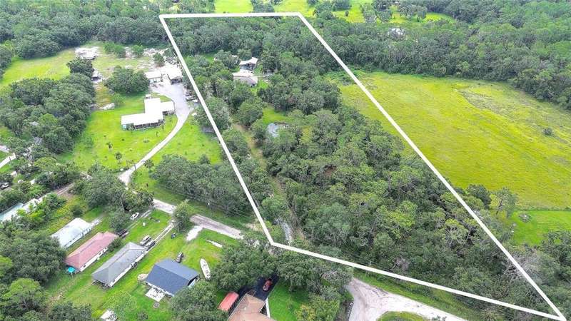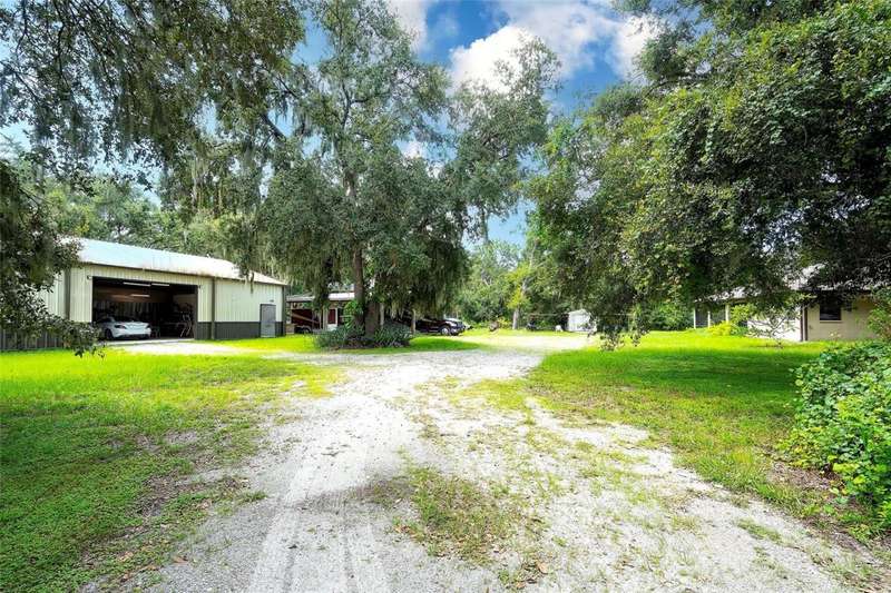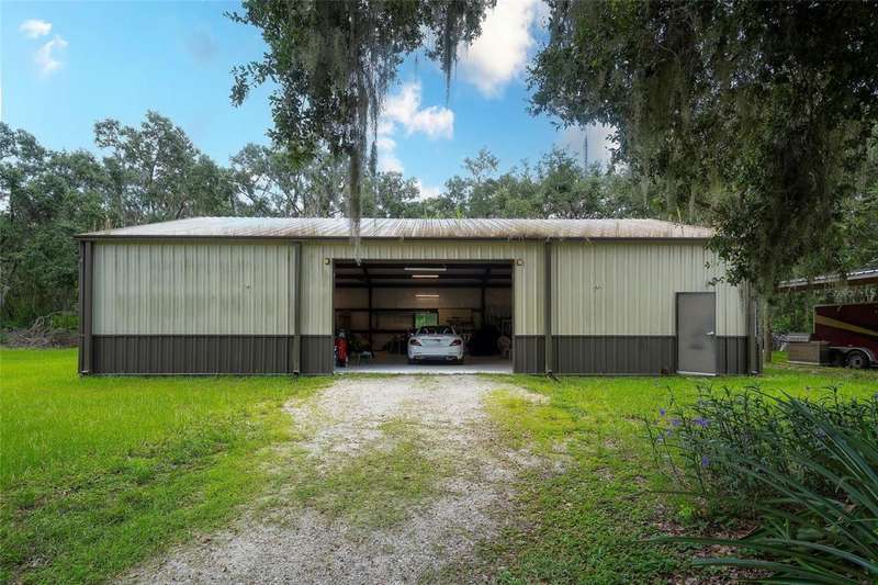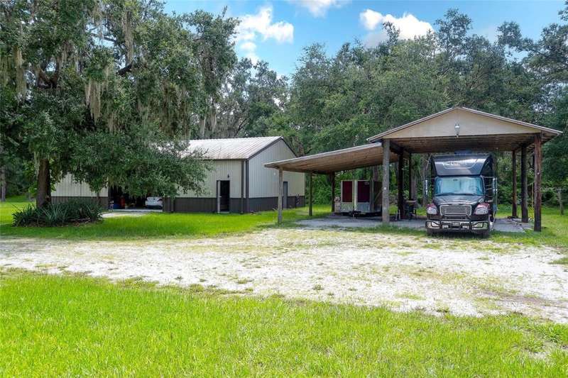 Under contract-accepting backup offers. Experience the best of country living with this 3-bedroom, 2-bath home nestled on over 5 acres of secluded, tree-lined property complete with pole barn, huge workshop, and a private pond. Step inside to vaulted ceilings and an inviting eat-in kitchen featuring custom oak cabinetry and newer appliances. The primary suite boasts a walk-in closet, ensuite bath with dual shower heads, and double doors that open to the screened lanai making it possible to enjoying quiet mornings with your coffee and the sounds of nature. For added peace of mind, the property features a remote-controlled access gate. Outdoor enthusiasts and business owners alike will love the 1,760 sqft pole barn with water and 60-amp electric service, ideal for storing RVs, boats, or large equipment. Need more space? The property also includes a 60ft x 40ft steel building workshop with 18ft ceilings and office space with 27 gun safe giving you endless possibilities for your dream workshop, man cave, or a space to run your business from home. Workshop includes a 9,000lb Bendpak auto lift, 1025R John Deere Tractor with detachable mowing deck, H120 front bucket and backhoe attachment, a zero-turn mower, and lots of other machinery and tools (list coming soon). Being zoned agriculture with no deed restrictions and limitless potential, this property is perfect for those seeking privacy, space, and flexibility. Whether you dream of running your business from home or simply enjoying a tranquil lifestyle and having the space to store your toys, this is the opportunity you've been waiting for. Home is just 5 miles from downtown Parrish and Moccasin Wallow Rd giving you access to US-41, I-75, and I-275 getting you to St. Pete, Tampa, and Sarasota.