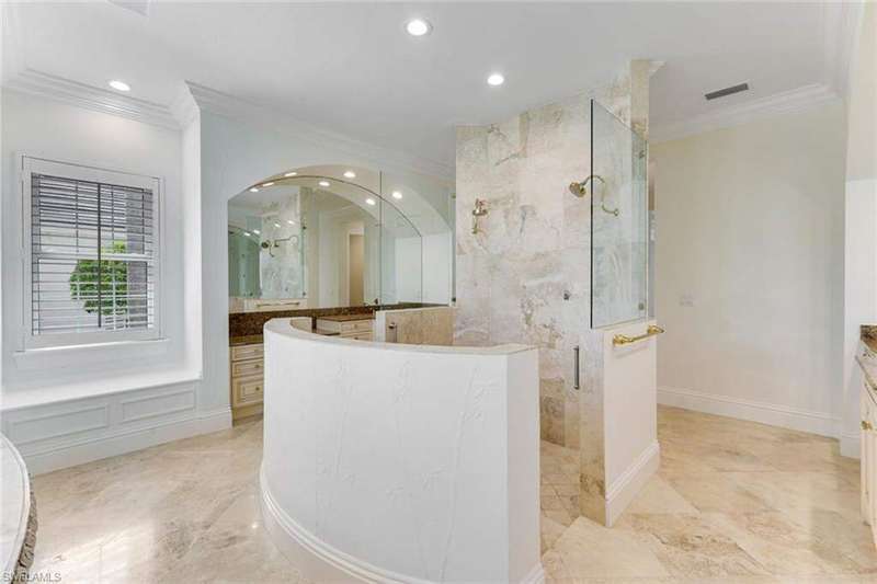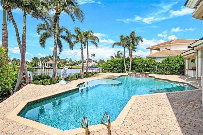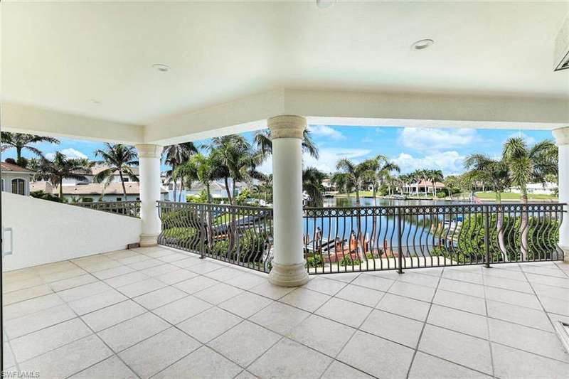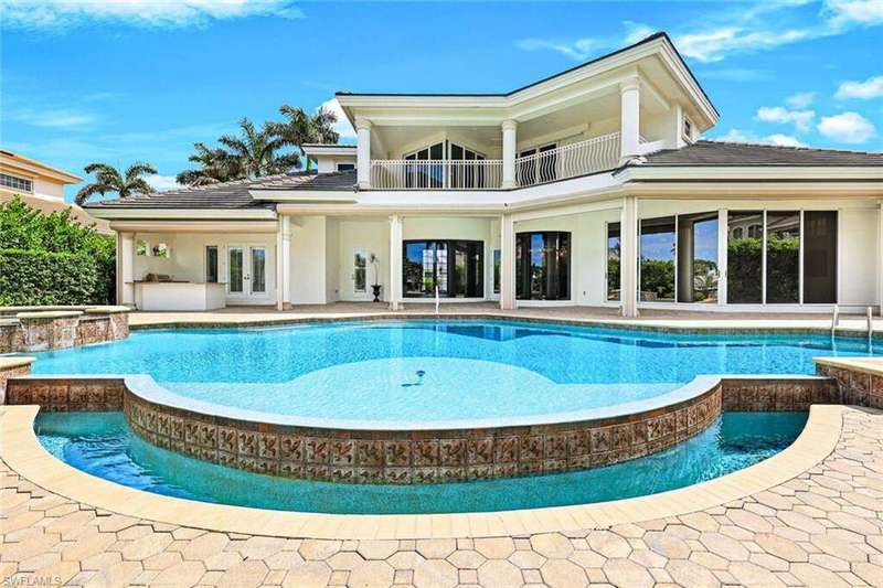 As you step into the formal living room, you're greeted by awe-inspiring water views framed by floor-to-ceiling windows, complemented by a cozy gas fireplace. Enjoy spectacular sunsets from your new residence in The Moorings, situated on .31 acres with southwest rear exposure on Compass Pass, where you'll find your boat dock with a lift that can accommodate a substantial-sized boat. Quick, direct Gulf access with one bridge is a boater's delight. Five bedrooms plus a den, a large bonus room, five and a half baths, as well as an oversized attached garage with a circular drive provide ample space for your car collection and street-legal golf cart. The generously sized family room, with pocketing sliding doors opening up to your amazing outdoor living space, will surely become a favorite spot for relaxing and enjoying time together. The sprawling master suite, with dual vanities, a jetted tub, walk-in shower, his-and-her custom closet systems, a separate library or den with beautiful French doors, and an additional first-floor en suite bedroom, offers ultimate comfort. Upstairs, you'll find three inviting bedrooms with custom closets and en suite baths, plus a pleasant bonus room with a wraparound balcony overlooking the fabulous pool and bay, perfect for a game room or media room. The grand gourmet kitchen, featuring a Thermador appliance package with a six-burner gas range and griddle, two dishwashers, a double wall oven, and a microwave drawer, is sure to excite any foodie. Dual Sub-Zero refrigeration, ample custom under-lit cabinetry with two islands, a fantastic oversized sink, and an ice maker make it perfect for entertaining. The impressive pool, with its expansive sundeck, jacuzzi, and summer kitchen, sits amid a beautifully landscaped, fully fenced backyard, ensuring privacy and security for your loved ones. Nestled on prestigious Mooring Line Drive, you're just moments away from Old Naples, the Venetian Village, Waterside Shops, and the exclusive Moorings private beach.