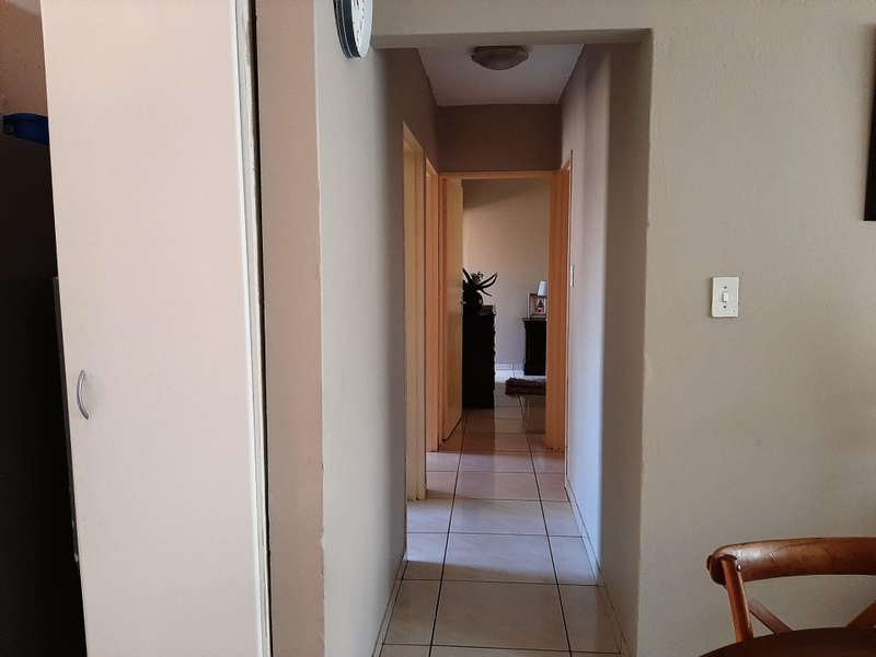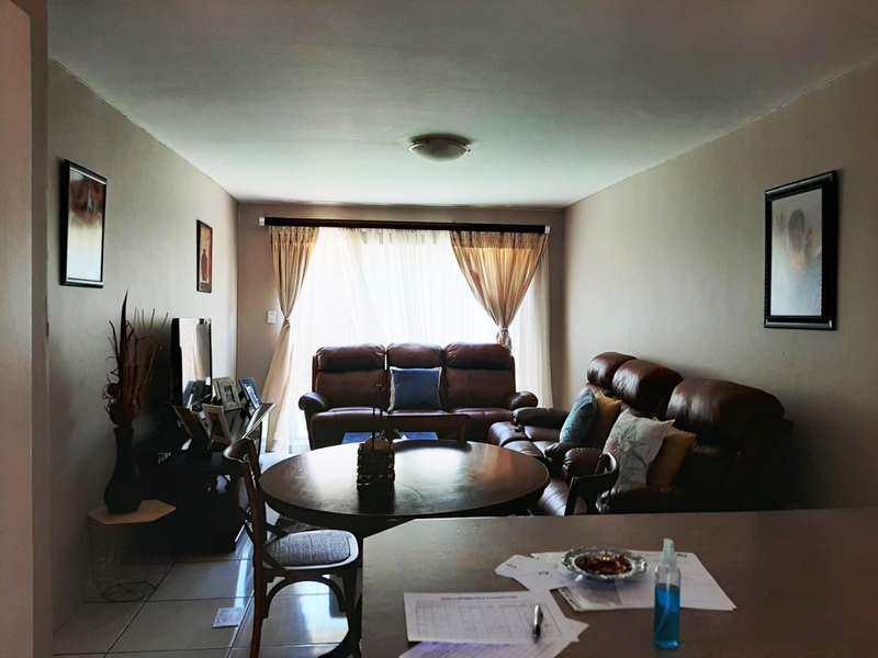 VERY NEAT GROUND FLOOR TOWNHOUSE comprising of: three sunny bedrooms two full bathrooms. Open plan kitchen leading into spacious lounge and dining room. Lovely tiles throughout the home. Double carport. 24-hour security.
