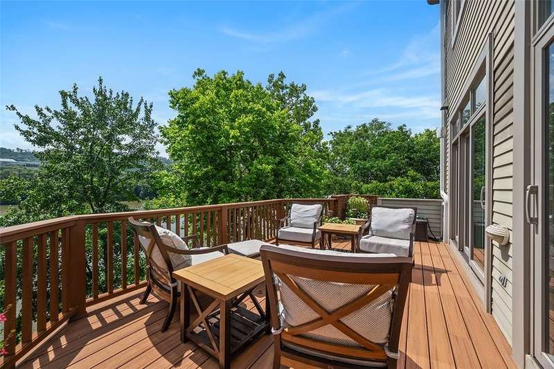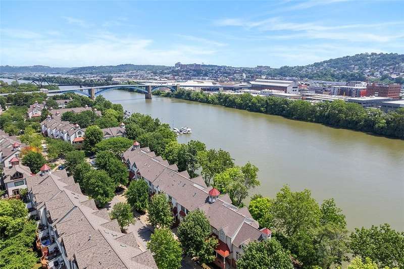 Modern, sophisticated & sun-filled, this stunning 3-story Herr's Island townhome is nestled on a quiet cul-de-sac in coveted Washington's Landing, offering spectacular Allegheny River views from every level/ Open-concept boasts rich hardwoods, 25' window wall flooding the entire main floor w/ natural light, built-in media center & access to 20'+ deck overlooking the water, High-end custom kitchen features creamy white cabinetry, 8x5 quartzite isle, wraparound quartz countertops & premium appliances. 2nd level w/3 bright bedrooms & roomy hall bath - 2 bedrms have river views, 1 w/enste. Sun-splashed 3rd lvl primary retreat showcases turret windows, soaring ceilings, 23' walk-in closet/ private water-view deck & luxurious ensuite/ LL impresses w/custom wine lounge w/ Venetian plaster walls, powder rm plus covered deck with trail access &, of course, river view. Experience modern luxury, timeless craftsmanship & stunning views, this extraordinary townhome truly has it all