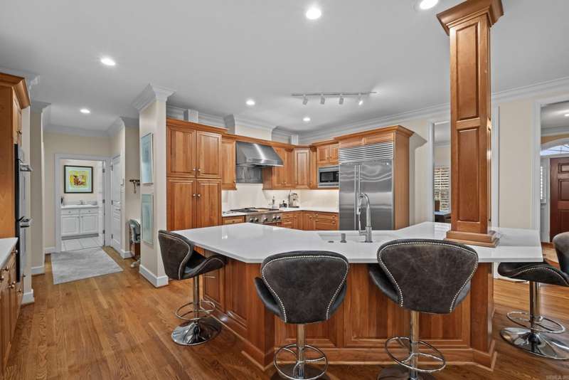 Nestled in a Serene, gated community this stunning home offers the perfect blend of luxury, comfort and natural beauty. Set beside a picturesque creek, the property provides a peaceful setting where you can unwind to the soothing sounds of water, and enjoy visits from local wildlife and birds. Inside, a dedicated Media Room awaits, complete with theater seating and newer surround sound equipment.The Heart of the Home is a chef's dream kitchen boasting top of the line appliances, elegant Brookhaven cherry wood cabinetry & quartz counters. The primary suite is a a private oasis with a handicap accessible bath with heated floors, a smart privacy window, luxurious steam shower & a custom walk-in closet. Additional features include a walk-in attic, 2 extra large BR's & Baths and a great laundry room. Whether you are enjoying a quiet morning by the creek, entertaining in the media room or preparing meals in the gourmet kitchen, this home delivers. New Roof 2025 With acceptable offer 1st 6 months of monthly fee pd by seller.