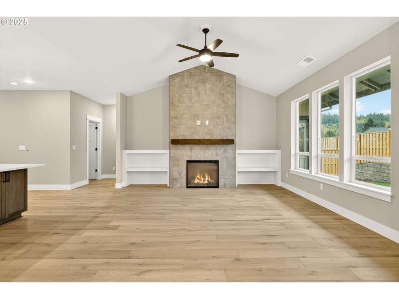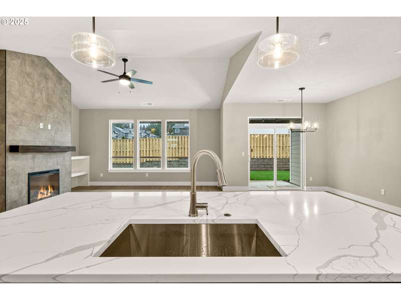 MOVE IN READY!!! DUGAN ESTATES IS OPEN WEDNESDAYS THROUGH SUNDAYS 1 TO 4!Start your tour at the host home at 744 NE Trillium Dr to view available homes. Discover this beautifully designed 4-bedroom, 2.5-bathroom home, featuring a stunning vaulted Great Room with an elegant electric fireplace — perfect for relaxing or entertaining. The gourmet kitchen is amazing, complete with a large island, modern stainless steel electric appliances, a walk-in pantry and ample cabinet space. The Primary Suite offers a tranquil retreat, showcasing a massive walk-in closet, soaking tub, separate walk-in shower, and a spa-like ensuite bathroom with double vanities and tile flooring. Enjoy stylish and durable laminate flooring throughout the main living areas, while the dedicated laundry room adds convenience with its own tile flooring. The versatile 4th bedroom also impresses with vaulted ceilings and a walk-in closet. Additional features include abundant storage space, a covered back patio, professionally landscaped yard, and fully fenced backyard, offering privacy and outdoor enjoyment year-round. Come take a look!