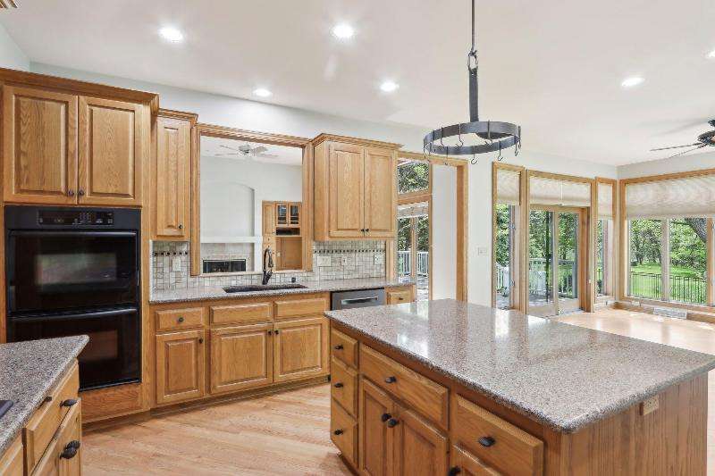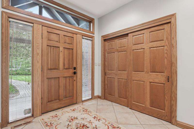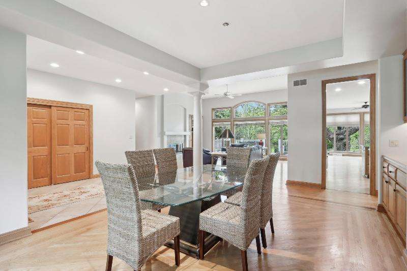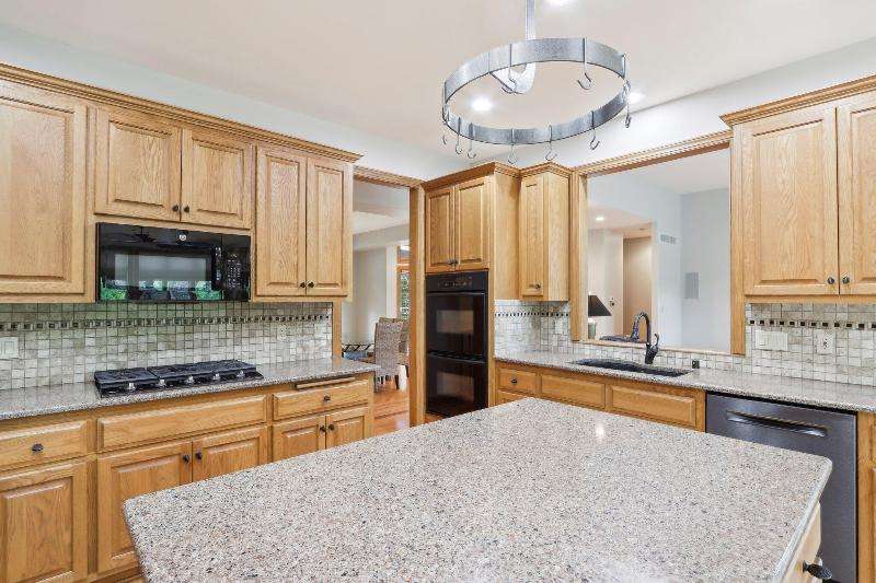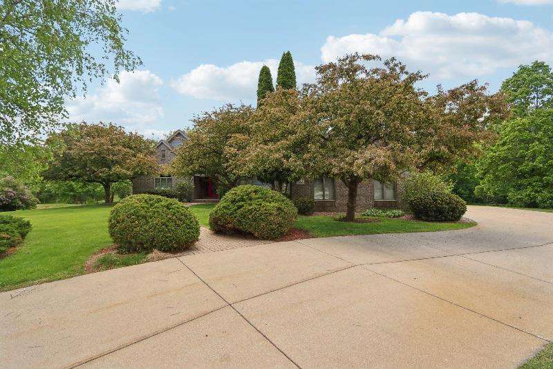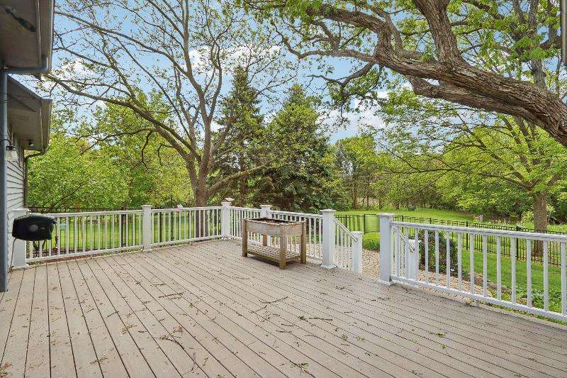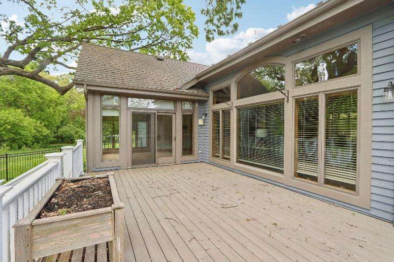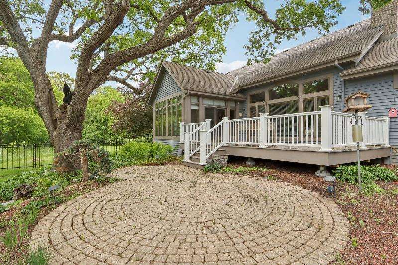 This lovely ranch is set on a cul de sac at the back of Chapel Ridge. Impressive tiled entry into open concept design. Formal DR with wetbar is open to spectacular FR with GFP. Quartz kitchen with large center island with attached dinette & sunroom to soak in the private wooded views. Split bedroom design offers private master suite complete with built-ins, large spa tub, shower stall & dual dressing areas with his & her powder rooms & WICs. Large BRs 2&3 with hall bath. The 1/2 bath & large, tiled laundry room are located off the 3-car garage. You will appreciate the HWFs, architecturally detailed ceilings, & central vac. Impressive 1.2 acres site enjoyed from the no maintenance deck & inlaid brick patio with fenced area. Roof is nearing end of normal expected life. See doc
