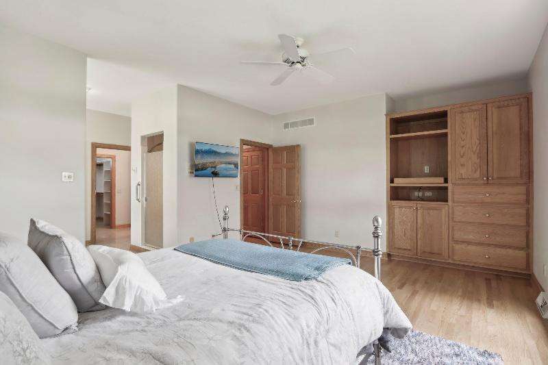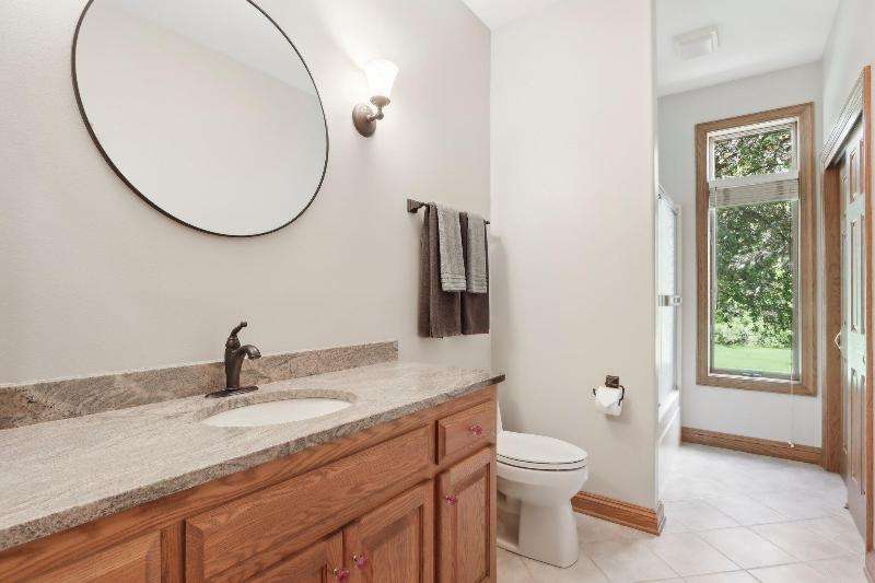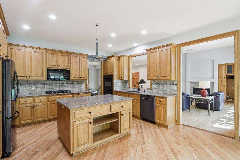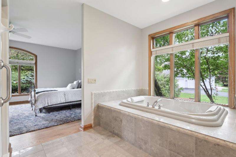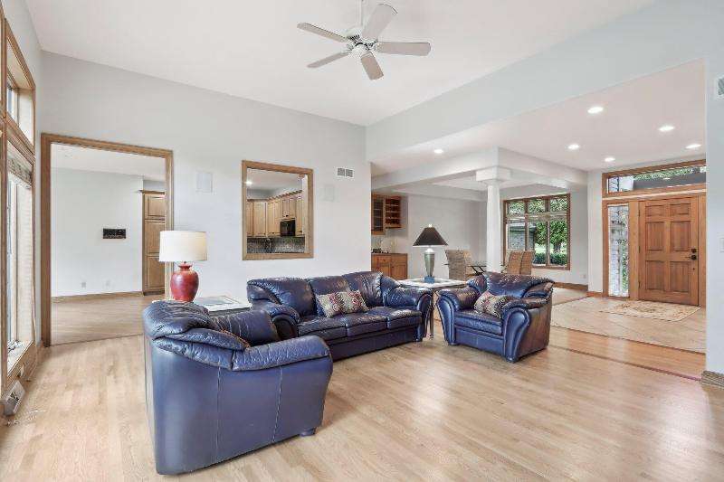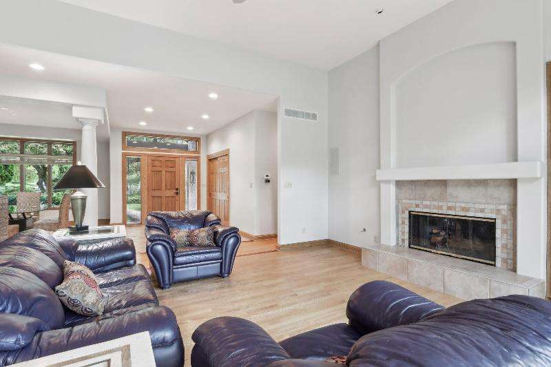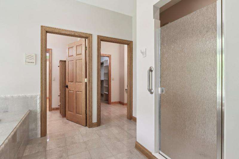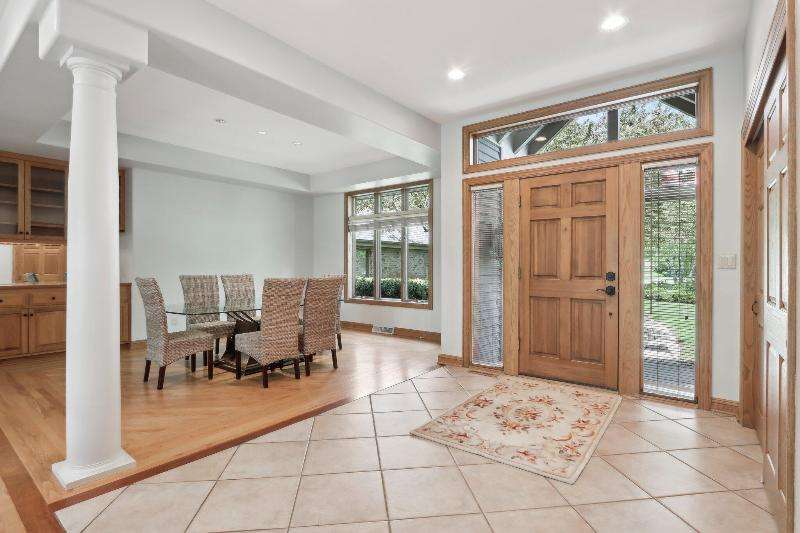 This lovely ranch is set on a cul de sac at the back of Chapel Ridge. Impressive tiled entry into open concept design. Formal DR with wetbar is open to spectacular FR with GFP. Quartz kitchen with large center island with attached dinette & sunroom to soak in the private wooded views. Split bedroom design offers private master suite complete with built-ins, large spa tub, shower stall & dual dressing areas with his & her powder rooms & WICs. Large BRs 2&3 with hall bath. The 1/2 bath & large, tiled laundry room are located off the 3-car garage. You will appreciate the HWFs, architecturally detailed ceilings, & central vac. Impressive 1.2 acres site enjoyed from the no maintenance deck & inlaid brick patio with fenced area. Roof is nearing end of normal expected life. See doc