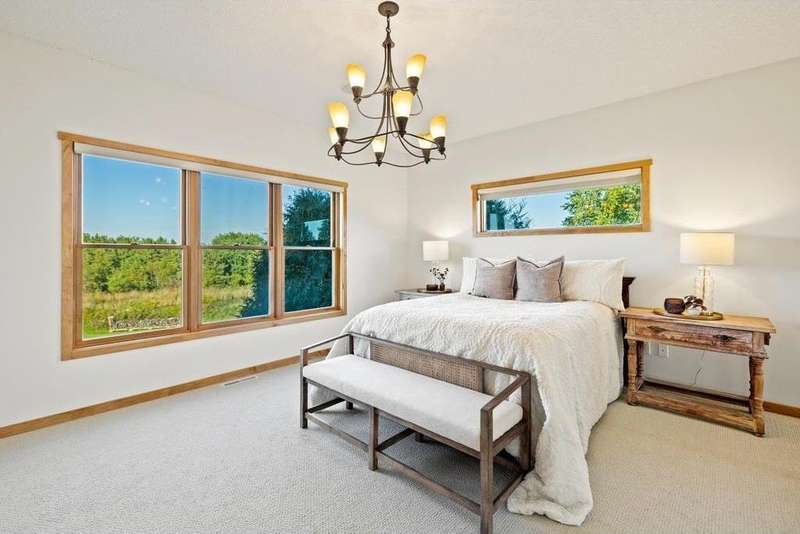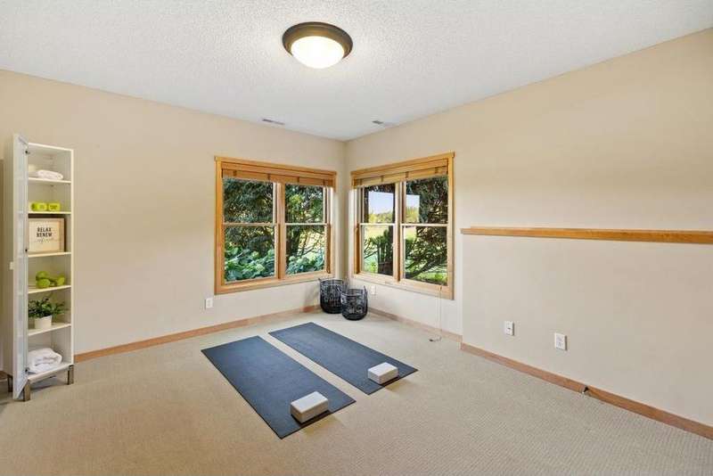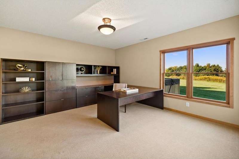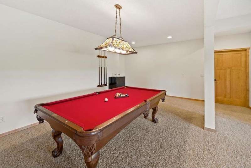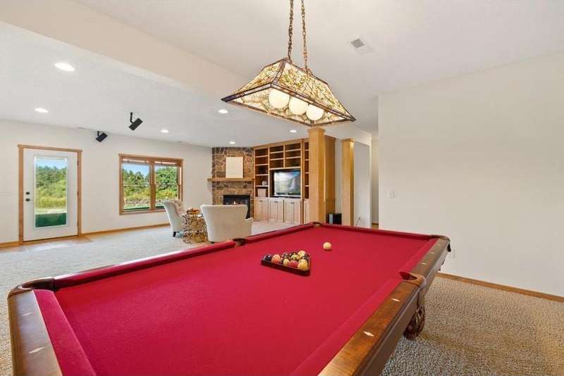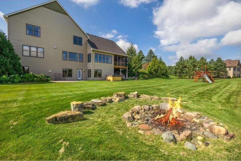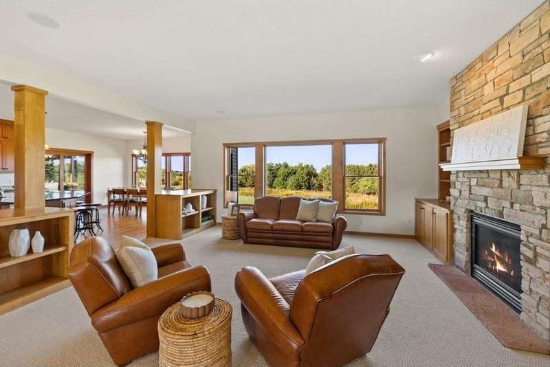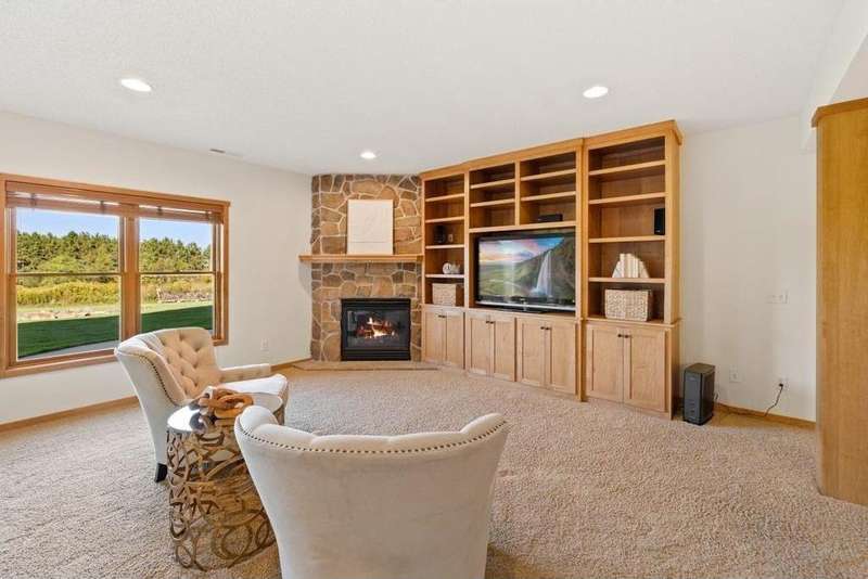 Experience the perfect blend of privacy, luxury, and convenience in this stunning Lake Elmo home. Backing up to Lake Elmo Park Reserve, enjoy over 2,000 acres of trails and open green space just steps from your backyard. Inside, the living room features a wall of windows framing the park views, a stacked stone fireplace, and custom built-ins, while the kitchen offers a large island with breakfast bar, abundant counter space, ample cabinets, and a walk-in pantry — perfect for cooking, entertaining, and everyday life. The walkout lower level includes a family room, home office, billiards room, and sixth bedroom, seamlessly connecting indoor living to the backyard. Enjoy a screen porch for morning coffee or evening cocktails, and a backyard retreat with firepit and patio. A thoughtfully designed mudroom keeps coats, shoes, and essentials organized. Located in a quiet cul-de-sac, this home provides tranquility while remaining just minutes from Woodbury shopping, grocery stores, and dining, offering the ideal balance of serene living and modern convenience.