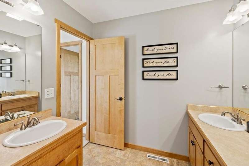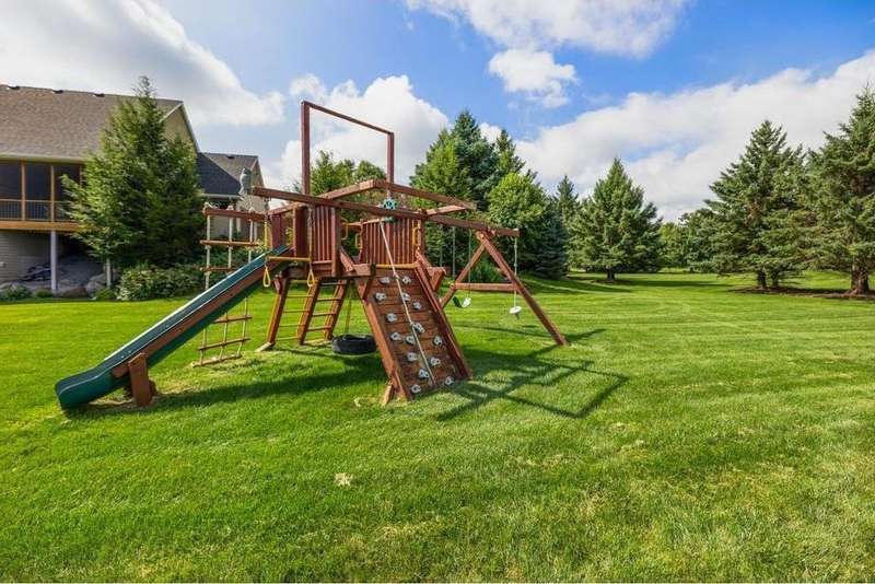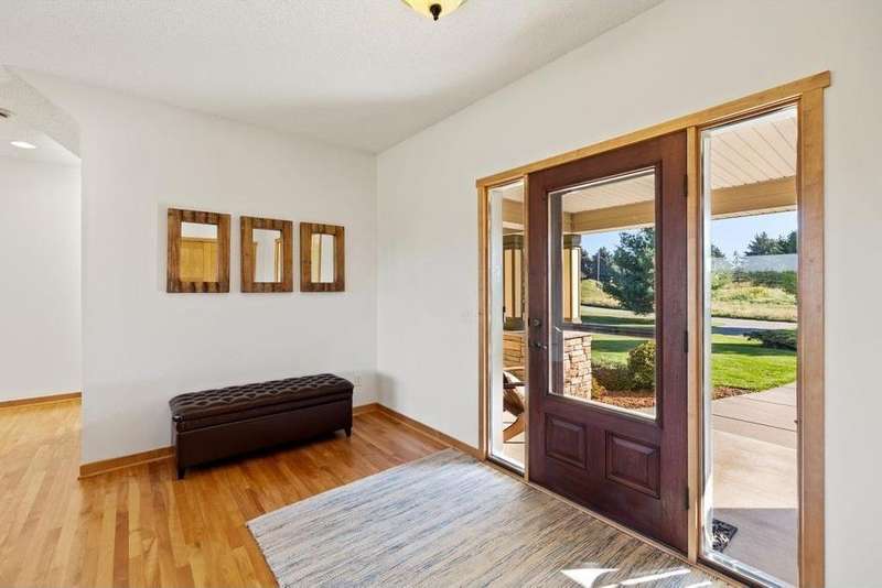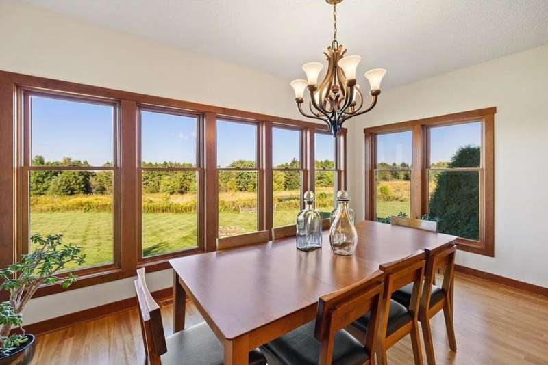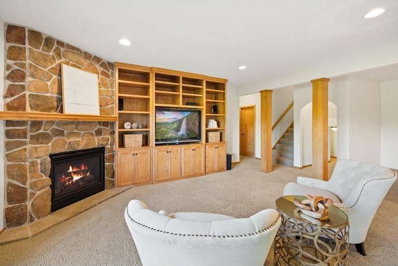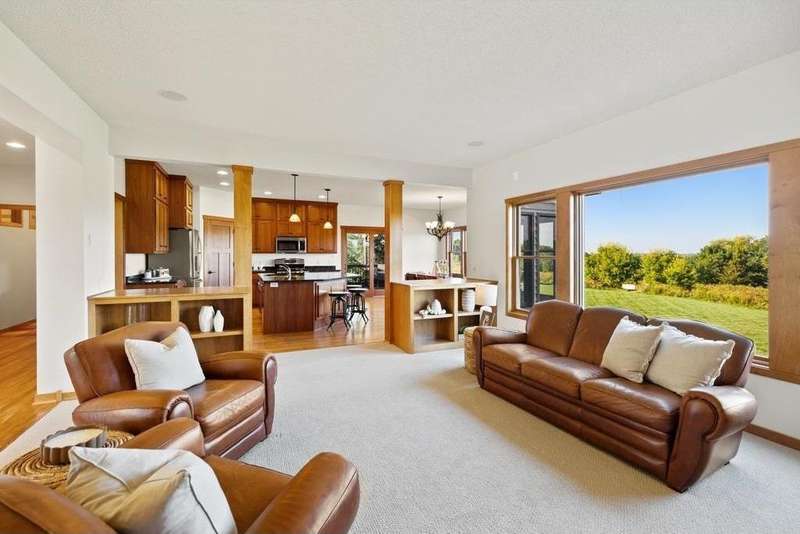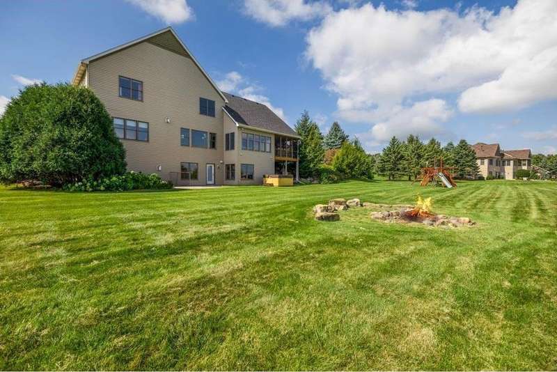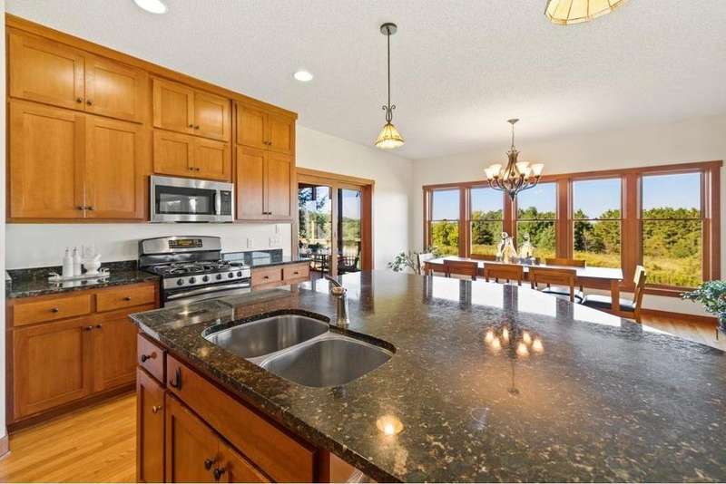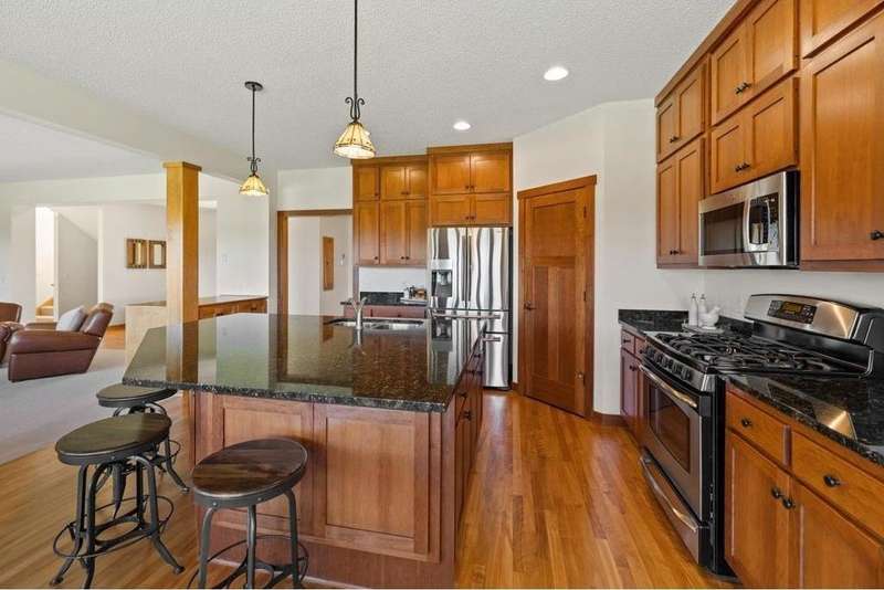 Experience the perfect blend of privacy, luxury, and convenience in this stunning Lake Elmo home. Backing up to Lake Elmo Park Reserve, enjoy over 2,000 acres of trails and open green space just steps from your backyard. Inside, the living room features a wall of windows framing the park views, a stacked stone fireplace, and custom built-ins, while the kitchen offers a large island with breakfast bar, abundant counter space, ample cabinets, and a walk-in pantry — perfect for cooking, entertaining, and everyday life. The walkout lower level includes a family room, home office, billiards room, and sixth bedroom, seamlessly connecting indoor living to the backyard. Enjoy a screen porch for morning coffee or evening cocktails, and a backyard retreat with firepit and patio. A thoughtfully designed mudroom keeps coats, shoes, and essentials organized. Located in a quiet cul-de-sac, this home provides tranquility while remaining just minutes from Woodbury shopping, grocery stores, and dining, offering the ideal balance of serene living and modern convenience.