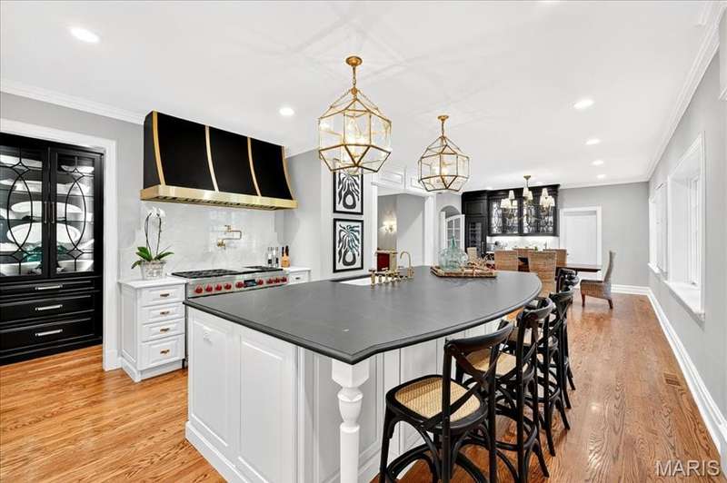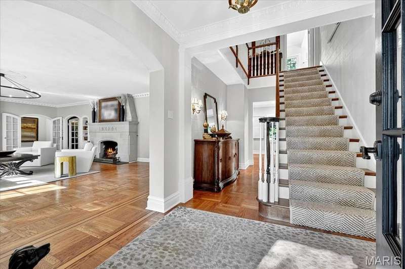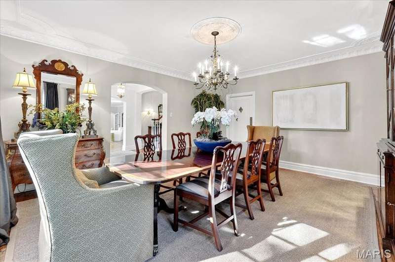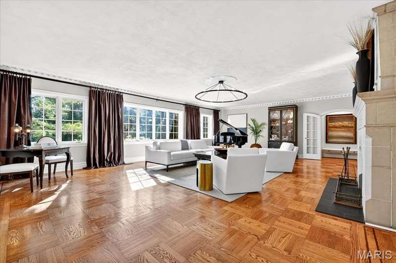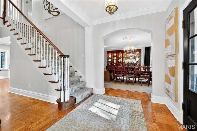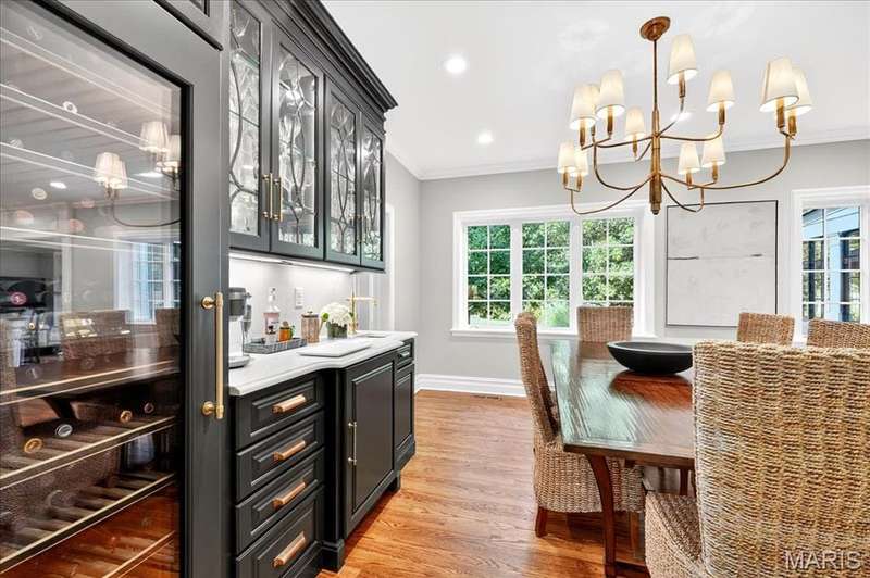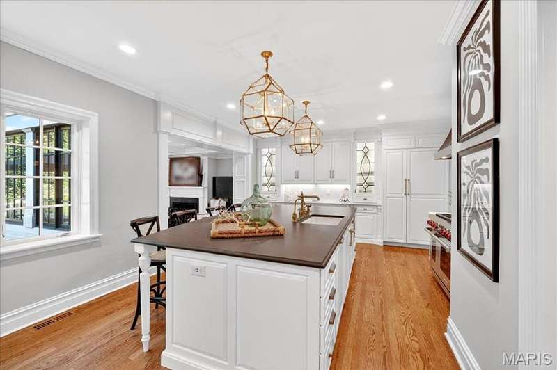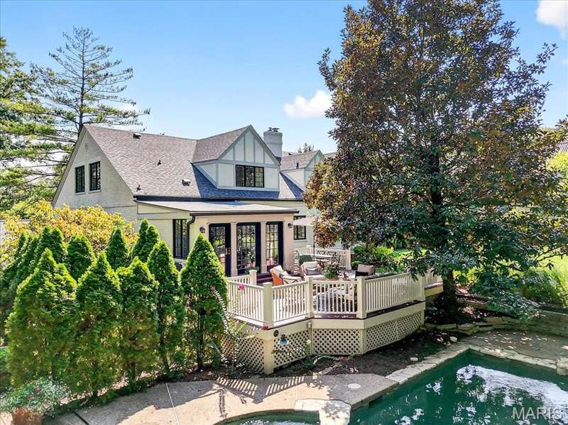 1930s dream home tucked away on a quiet, no outlet street in Ladue, this beautiful Lay Road home offers 6220 sq ft of elegance and modern luxury. Completely remodeled in 2022, the home won the 2022 Home Builders Association Remodel Kitchen Award featured in both Ladue News and Town & Style Magazines - a true Beck/Allen showpiece. It boasts custom cabinetry w/lead glass fronts, a 10 x 5 center island breakfast bar, butlers pantry, wet bar w/wine tower, beverage refrigerator, & commercial-grade Wolf, Sub-Zero, & Miele appliances. The gracious foyer w/opened staircase opens to an expansive living room w/stone fireplace & a spacious dining room. The hearth room, w/exquisite box-beam millwork & gas fireplace, creates a sophisticated yet inviting gathering space. The main level also includes a luxurious primary suite w/dual walk-in closet, a spa-inspired bath, a study w/wall of built-ins, a new laundry room w/dog shower 2022, & new guest bath 2022. Upstairs, a barreled-ceiling hallway leads to a grand family room, 4 additional bedrooms, 2 full baths, & versatile flex spaces. Outdoor living is equally impressive w/a sprawling deck overlooking the manicured, fenced almost 1-acre grounds & sparkling pool. Recent upgrades & features include new architectural roof 2025, HVAC systems 2022 & 2025, added & refinished hardwood floors 2022, insulated wood windows & extensive millwork throughout. Impeccably finished & thoughtfully curated, this home offers the pinnacle of Ladue living.