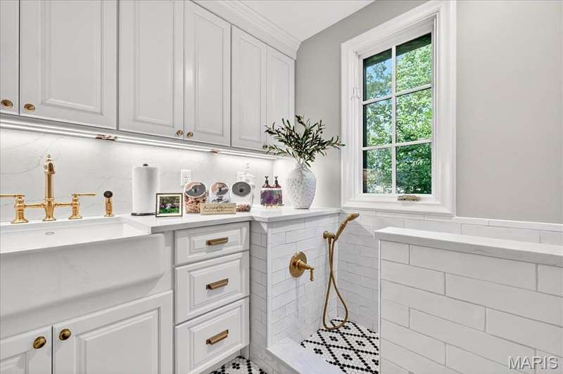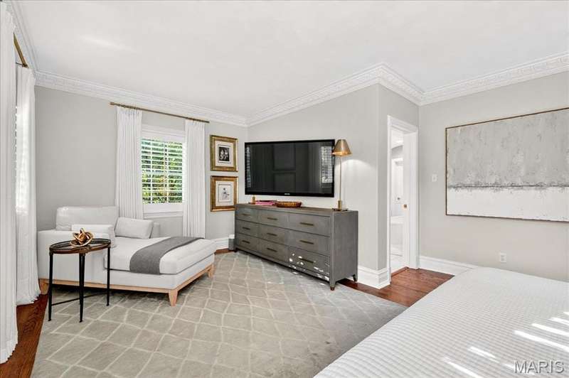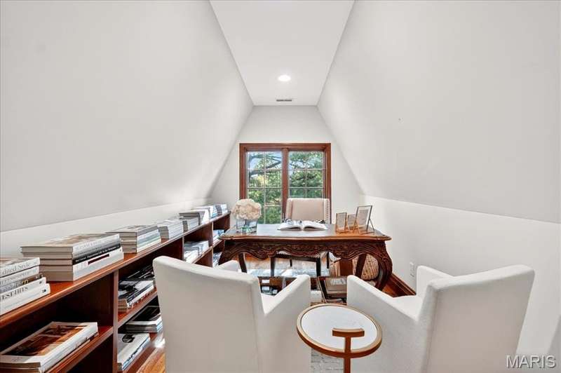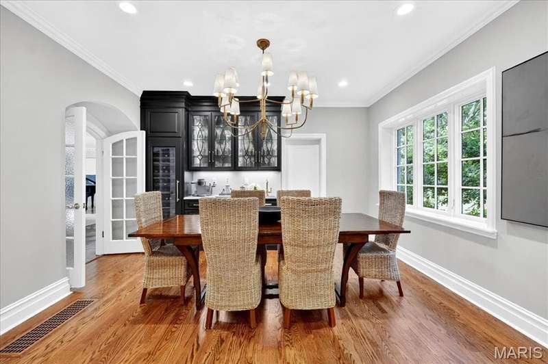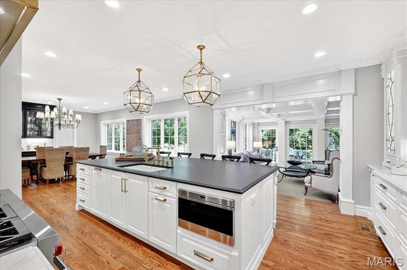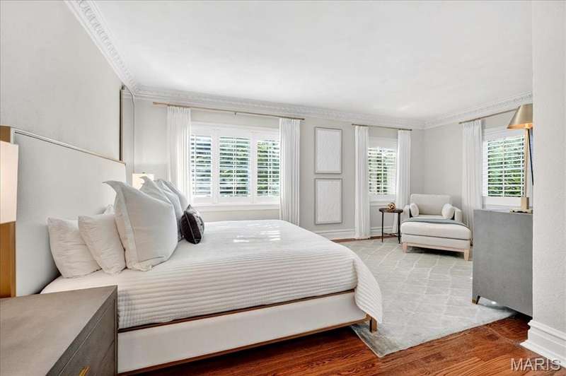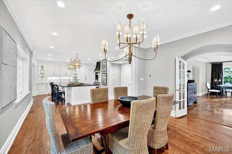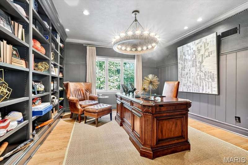 1930s dream home tucked away on a quiet, no outlet street in Ladue, this beautiful Lay Road home offers 6220 sq ft of elegance and modern luxury. Completely remodeled in 2022, the home won the 2022 Home Builders Association Remodel Kitchen Award featured in both Ladue News and Town & Style Magazines - a true Beck/Allen showpiece. It boasts custom cabinetry w/lead glass fronts, a 10 x 5 center island breakfast bar, butlers pantry, wet bar w/wine tower, beverage refrigerator, & commercial-grade Wolf, Sub-Zero, & Miele appliances. The gracious foyer w/opened staircase opens to an expansive living room w/stone fireplace & a spacious dining room. The hearth room, w/exquisite box-beam millwork & gas fireplace, creates a sophisticated yet inviting gathering space. The main level also includes a luxurious primary suite w/dual walk-in closet, a spa-inspired bath, a study w/wall of built-ins, a new laundry room w/dog shower 2022, & new guest bath 2022. Upstairs, a barreled-ceiling hallway leads to a grand family room, 4 additional bedrooms, 2 full baths, & versatile flex spaces. Outdoor living is equally impressive w/a sprawling deck overlooking the manicured, fenced almost 1-acre grounds & sparkling pool. Recent upgrades & features include new architectural roof 2025, HVAC systems 2022 & 2025, added & refinished hardwood floors 2022, insulated wood windows & extensive millwork throughout. Impeccably finished & thoughtfully curated, this home offers the pinnacle of Ladue living.