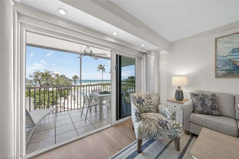 Step into island sophistication with this beautifully renovated one-bedroom retreat, tucked within the private gates of South Seas Resort. Perched on the second floor, this fully furnished condo pairs breezy coastal style with modern upgrades and impressive rental potential. Inside, an airy open-concept design welcomes you with warm luxury vinyl floors, updated counters, stainless steel appliances, a double-wide sink, and designer LED lighting. Floor-to-ceiling hurricane-rated sliders frame tranquil Gulf views and open to your private screened lanai-the ideal perch for sunset cocktails and salty breezes. Perfectly located on the sought-after South End of the resort, you're just a short stroll to Captiva Village, boutique shopping, and beloved dining favorites.