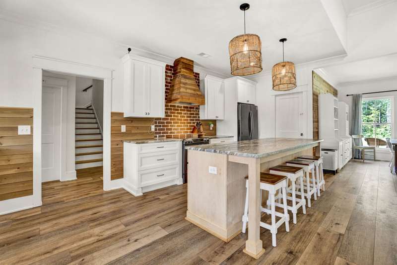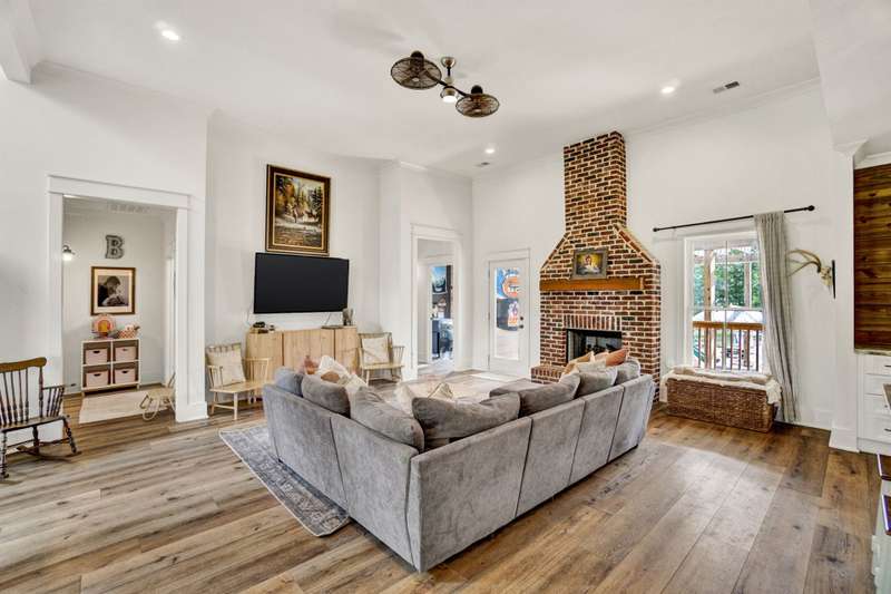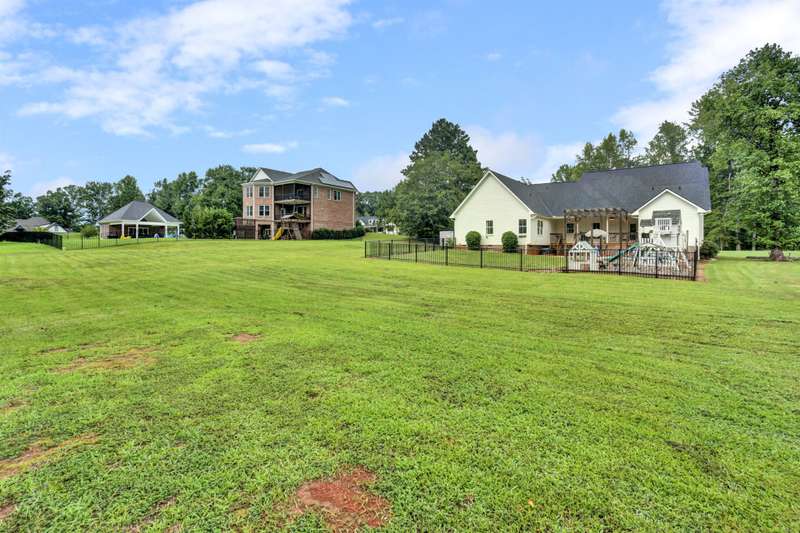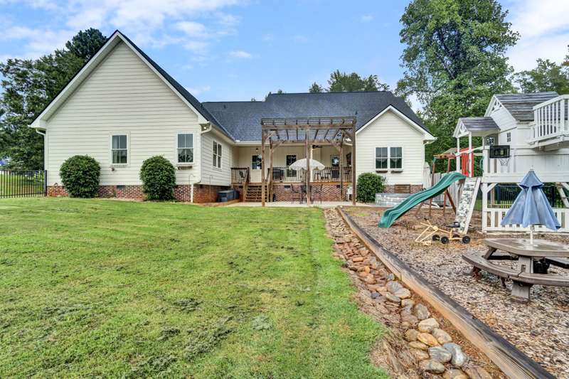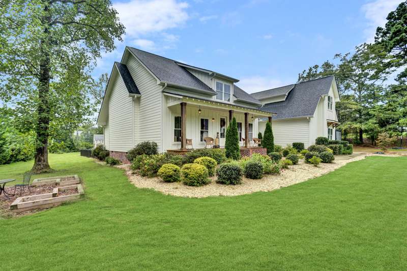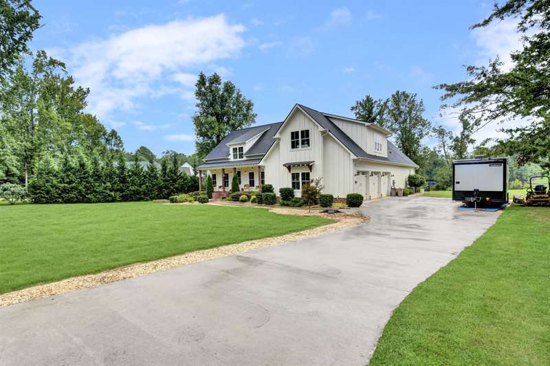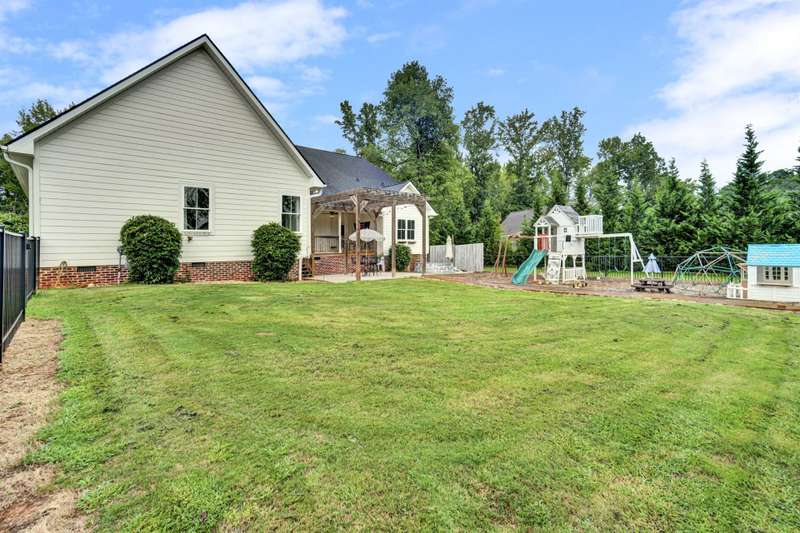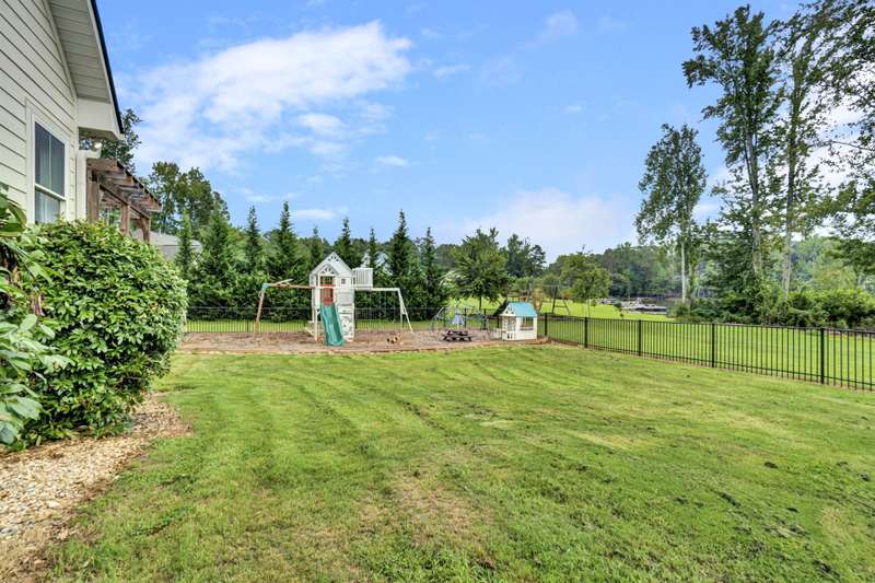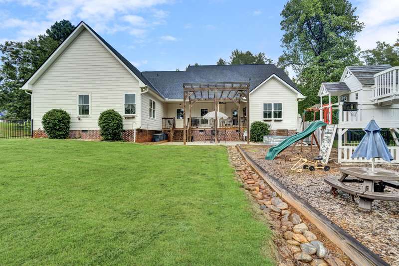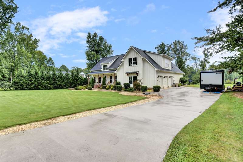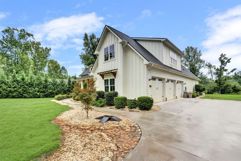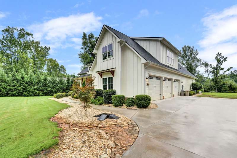 Nestled along the shores of Crawford Lake in Powdersville, this home has the charm of a modern farmhouse wrapped in the serenity of a lakefront retreat. The white concrete plank siding with board and batten accents gives it that timeless appeal, the kind that makes you feel like you've found the place you've always been meant to call home. Step inside and the two story foyer greets you with light and space. Just off the entry is a large dining room, perfectly placed for gatherings that grow even more special as the holidays approach. You can almost picture a long table filled with friends, family, and laughter. From here the heart of the home unfolds into the kitchen and family room, where life naturally gathers. The kitchen is as functional as it is beautiful. A long island stretches wide, ideal for spreading out holiday treats or evening homework while dinner simmers. The granite counters are stunning, each slab carefully chosen. A lovely hood crowns the stove, and the farmhouse sink feels right at home here. The thoughtful choice to avoid surrounding the sink with upper cabinets makes the space feel open and airy, as if the room breathes with you. The oversized pantry is a dream, ready to swallow up every crockpot, snack, and oversized platter you could possibly own. The family room is generous in size, anchored by a brick fireplace with gas logs that set the tone for cozy evenings. Wide windows draw your gaze to the lake just beyond, where the water shimmers in every season. Step outside and the living space continues. A covered deck makes for shady afternoons while a sprawling patio below becomes the hub for barbecues, stargazing, or simply a quiet evening by the water. The fenced yard gives kids their own place to run and play, yet just beyond the fence the lake stretches, a constant reminder of the rare beauty of this setting. Back inside, the home is designed mostly on one level. The primary suite is split from the guest rooms, creating a retreat of its own. Here too, large windows frame the lake view. The bath is well appointed with double sinks, a walk in shower, and a closet so spacious it feels like its own room. Just beside this suite sits a versatile space the seller uses as a gun room and office, a feature that adds both practicality and a touch of personality. The laundry room is oversized as well, ready for big appliances and storage that actually works. The guest bedrooms are tucked away on the other side of the home, connected by a jack and Jill bath that features its own farmhouse style sink. Each bedroom is bright and cheerful, designed with care and ample closet space. Upstairs you'll find another guest room and a nicely sized bonus room. Large windows flood these spaces with natural light, and plumbing is already in place for a future bath should you decide to expand. Outside, the level lot is beautifully landscaped, adding polish to the natural setting. Living on Crawford Lake in Powdersville is not something that comes available often, and this home captures the dream perfectly. The community dock opens the door to fishing, canoeing, or simply drifting across the water at your own pace. The location is just as special as the home itself. Wren schools are known for their strong sense of community and tradition, and this address puts you right in the heart of it. Yet you are also just minutes from Greenville, Anderson, or Easley, giving you the best of both convenience and retreat. This is more than a house on the lake. It is a story waiting to be lived, where farmhouse charm meets the stillness of water and the joy of community, all in one rare and beautiful setting.