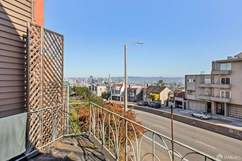 Tremendous Upside Potential. Gorgeous views of the city and bay. 3-separate Units. Main home has 2+ bedrooms one full bath,Wood flooring. Studio has kitchen and full bath, views, and separate Cottage is a studio with Kitchen and full bath.Separate entrance with side gate. Built in 1900 and main home was added on in late 50s.One-car garage.Large storage room and laundry area below main house. Rear yard with original Cottage. Own a piece of San Francisco History!