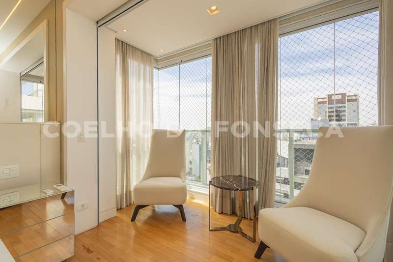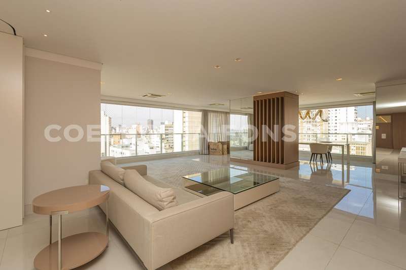 Venha conhecer esse apartamento´em andar alto, com vista e acabamentos sofisticados em projeto de Roberto Migotto no coração de Higienopolis.Sala ampla que integra sala de jantar e Home Theatre mas também pode ser isolado por folhas de portas corrediças e modernas dando maior intimidade ao ambiente sem prejudicar a decoração. 3 suites confortaveis e ensolaradas ,sendo uma montado para escritorio , todos ambientes com ar condicionado e persianas automatizadas.Cozinha completa e montada.Edificio com lazer completo e Elevador de Shabat pórximo a sinagogas e comércio da região.