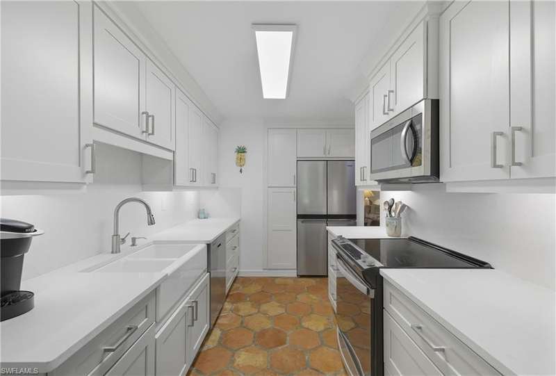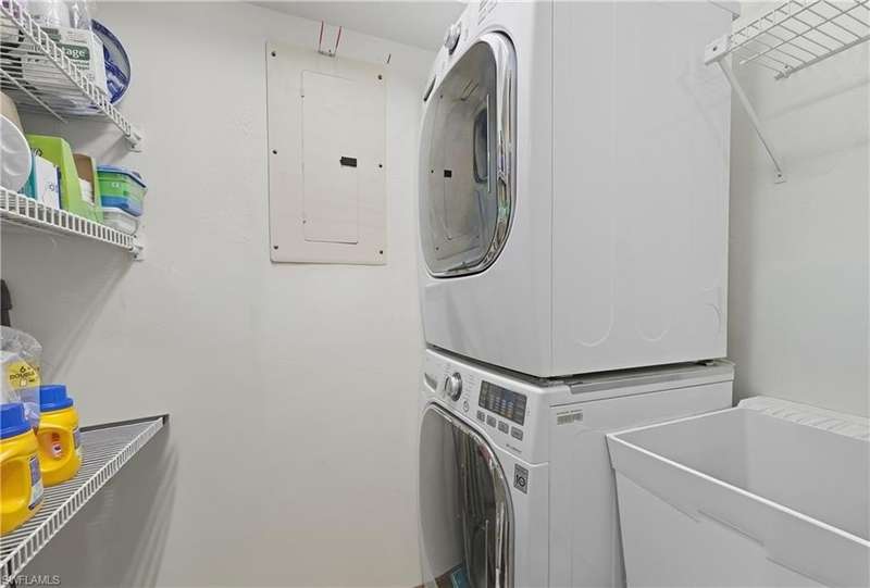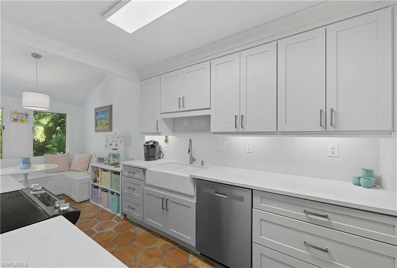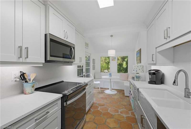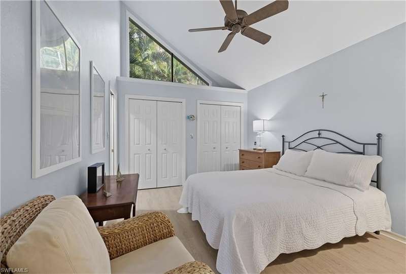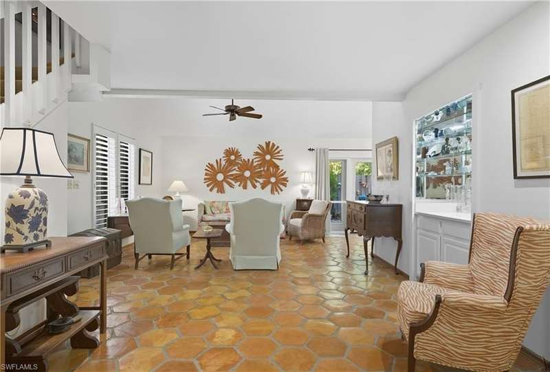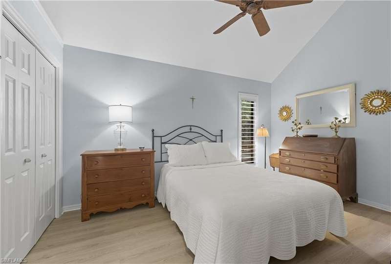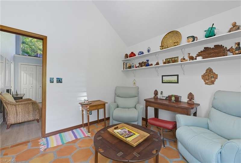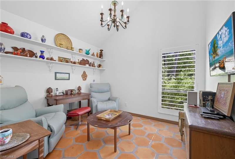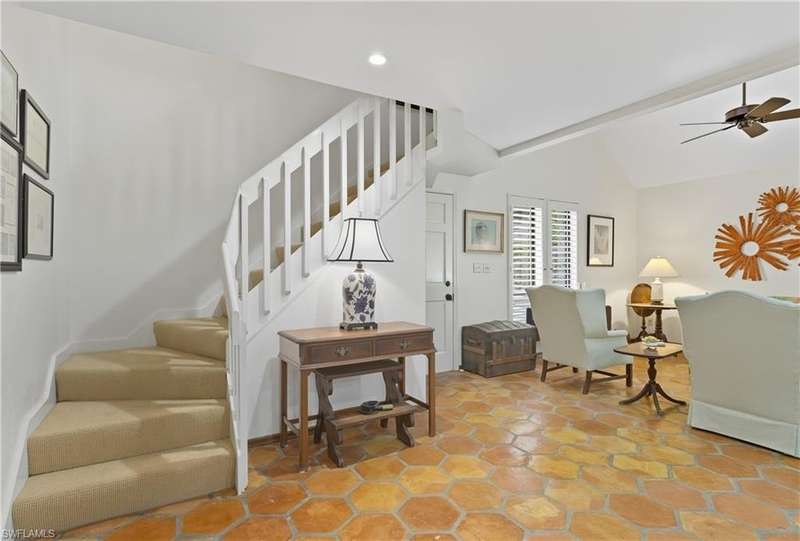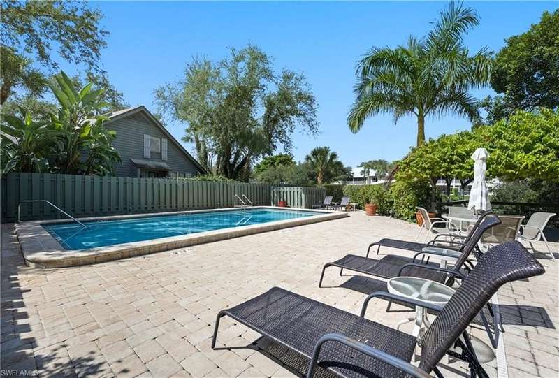 Welcome to your dream retreat in Bent Pines Villas, where tranquility meets convenience in a lush, tropical paradise. This inviting 2-bedroom, Den, 2-bathroom townhouse offers an idyllic lifestyle just minutes from Naples' renowned white sand beaches and vibrant downtown attractions. The first floor boasts a primary bedroom complete with a plush queen-sized bed, a large closet, and bathroom. Enjoy gatherings in the formal dining area designed to accommodate six, perfect for hosting family dinners or entertaining friends. The cozy living area offers a welcoming atmosphere for relaxation, while a separate den on the first floor provides additional space. The beautifully renovated kitchen featuring modern appliances and a charming morning room with seating, where you can sip your coffee while soaking in the natural light and views of the outdoor greenery. The second floor hosts a comfortable guest bedroom with a queen-sized bed and an adjacent bathroom, ensuring your visitors enjoy their stay with ample privacy and convenience. Step outside to discover a private fenced area, perfect for enjoying a morning coffee or an evening cocktail in your own personal paradise. Immerse yourself in the community spirit by taking advantage of the serene pool that overlooks a tranquil lake, ideal for sunny days spent lounging and soaking up the soothing ambiance. Whether you seek a peaceful sanctuary to unwind or an active lifestyle filled with dining, shopping, and beach days, this townhouse is your perfect haven.