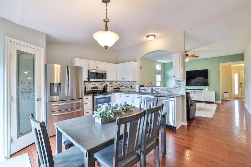 Welcome to this 4 bedroom, 3 bath ranch home. Comfortable one level living. 1st floor laundry. Spacious great room. Kitchen with cathedral ceiling, granite, backsplash, pantry, eat-in area, & a walkout to your deck overlooking your private wooded lot with a fenced yard. Primary suite offers an adjoining bath with tile, shower & a walk-in closet. The lower level adds additional living space & versatility with a full bath, bedroom, rec room, and bar - great for entertaining or movie nights. Storage shed. Furnace & AC 2 yrs, Roof 5 yrs, HWH 14 yrs. HOA $178.50 a year.