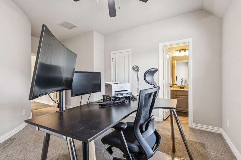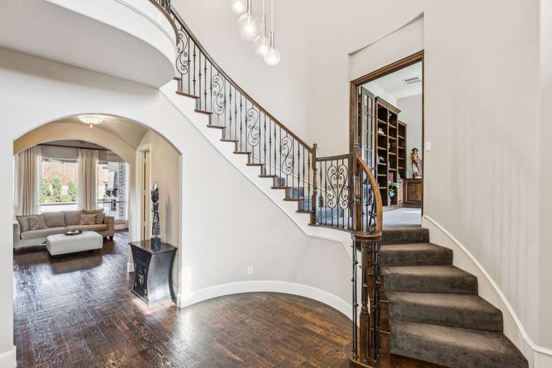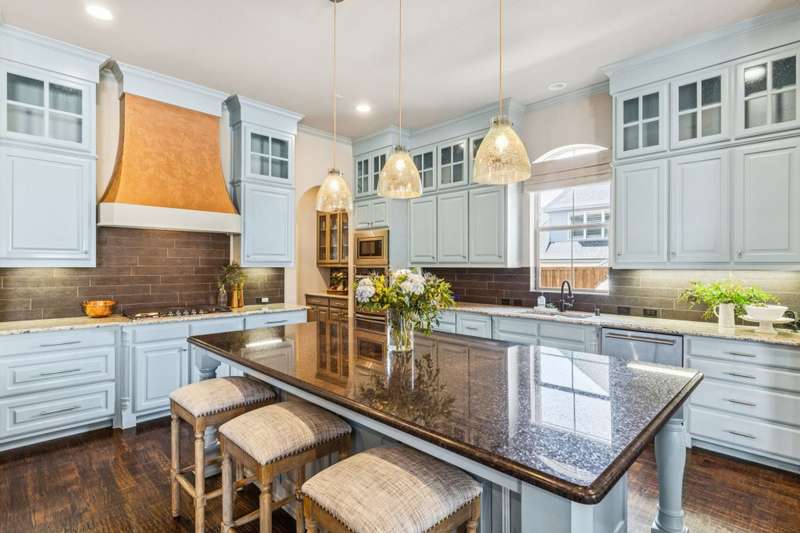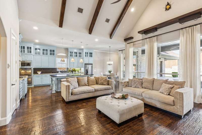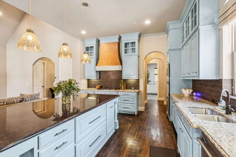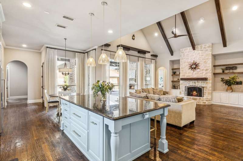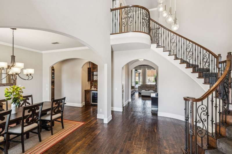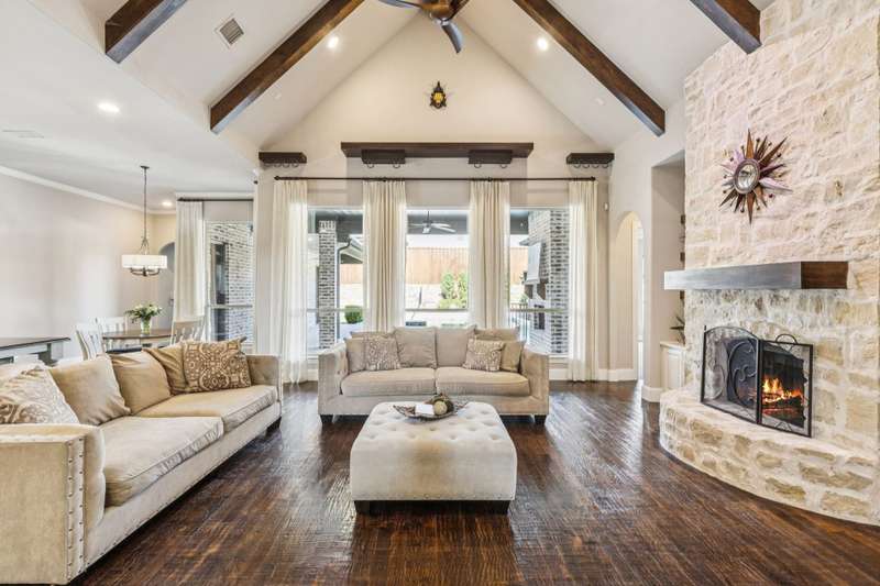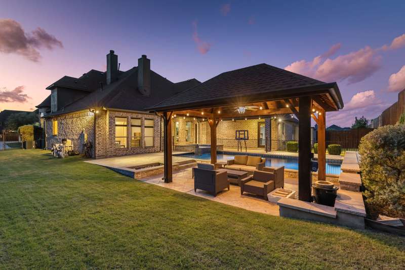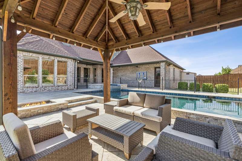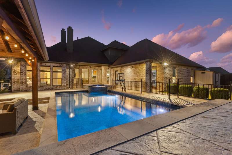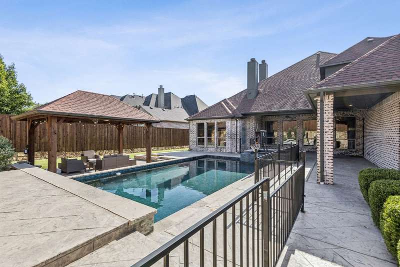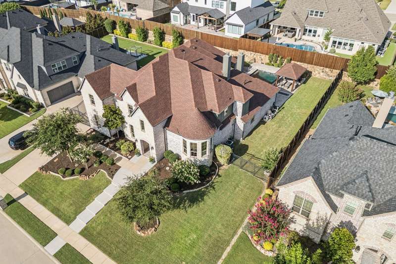 Experience timeless elegance and rustic charm in this extraordinary Pfiefer Custom Home, nestled in the heart of Saddle CreekProspers sought-after community. Inspired by the picturesque villas of the Italian countryside, the homes striking stone and brick faade sets the stage for refined living. Inside, rich hardwood floors, arched doorways, a dramatic winding staircase, exposed ceiling beams, and a floor-to-ceiling natural stone fireplace create a warm, inviting ambiance. This thoughtfully designed, multi-generational home includes a private mother-in-law suite, complete with a full kitchen and direct access to the sparkling pool and outdoor retreat. The chef-inspired kitchen is the heart of the home, featuring custom solid wood cabinetry, an oversized island with extensive storage (drawers on one side, cabinets beneath the bar), and two walk-in pantries. The open-concept layout connects the kitchen to a spacious great room, offering unobstructed views of the covered outdoor living area, fireplace, resort-style pool, spa, and cabanaperfect for year-round entertaining. Retreat to the luxurious primary suite with serene backyard views and a spa-like bathroom boasting a soaking tub, oversized walk-in shower, dual vanities, and an enormous walk-in closet. Upstairs, behind French doors, youll find a formal study with built-in bookcases and a walk-in closet. The second floor also offers three generously sized bedroomsincluding one with an en-suite batha private game room, and a dedicated media room. This one-of-a-kind home offers the perfect blend of functionality, beauty, and craftsmanship. Schedule your private tour today and experience the exceptional lifestyle Saddle Creek has to offer. Easy access to Prosper's shopping and dining district and the North Dallas Tollway.