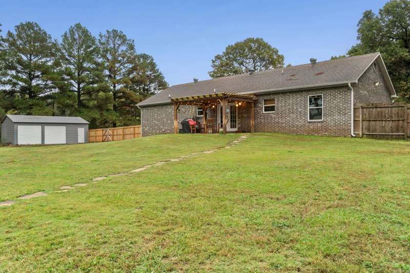 Charming, all brick home waiting for a new owner. Sits on 1.5 acres with outdoor living under the Pergola or sitting around the fire pit. Large Master with 2 walk in closets and en-suite bath & shower. Bonus area off kitchen, open living room and dining. Modern, quaint and functional, all in one! Large 20x30 shop w/2 garage doors and walk in door. Country living with easy city access, LRAFB and access to I-40 as well. Gutters, Pergola, privacy fence added 2022. It is a must see. Measing always encouraged. SQ FT taken from previous appraisal. Survey on file from 2021 when purchased.