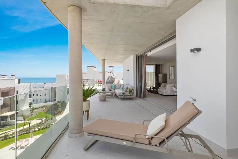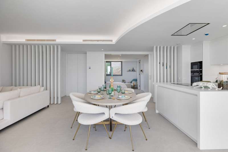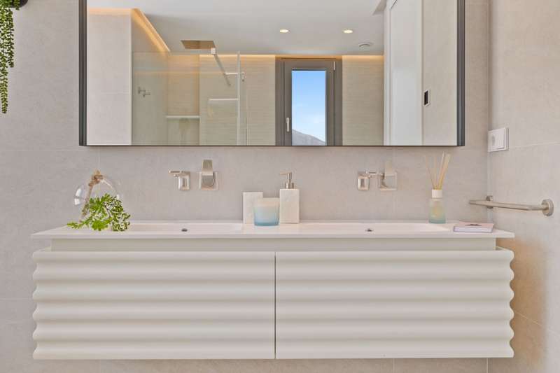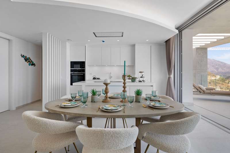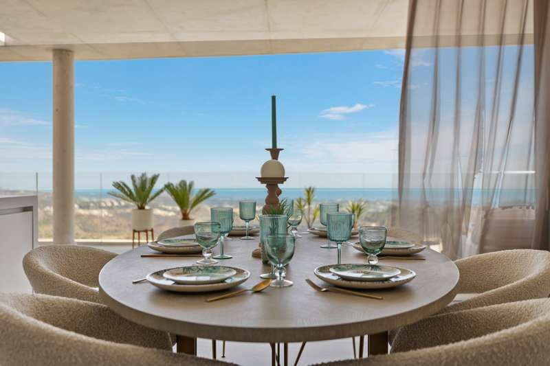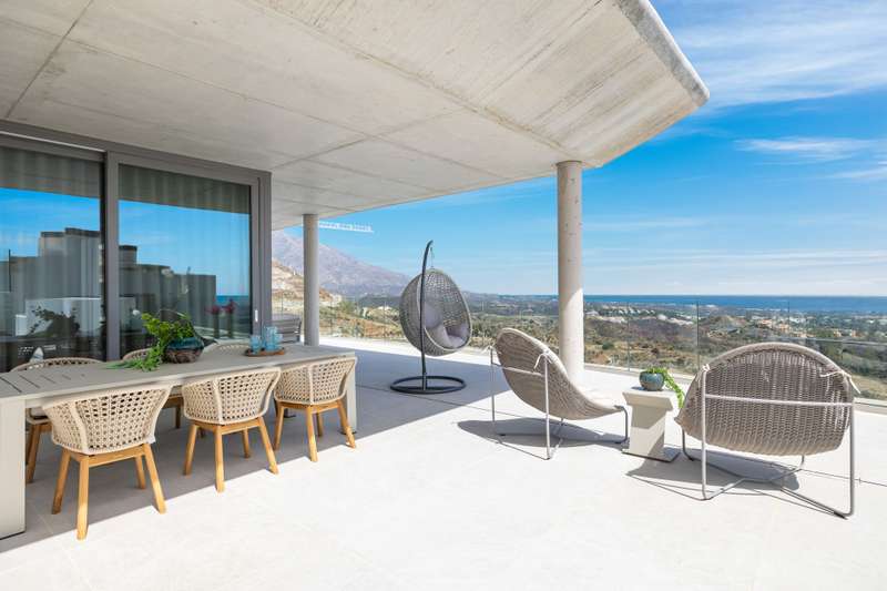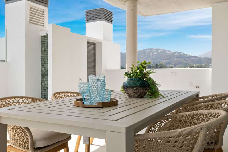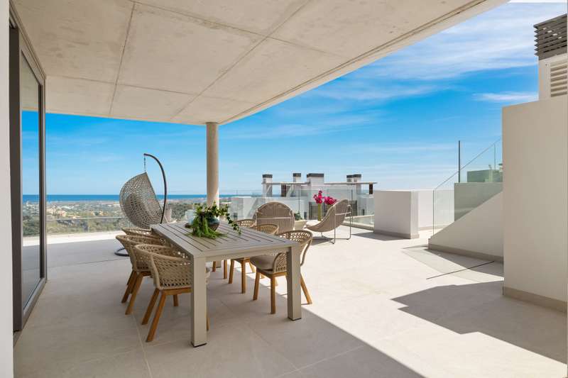 Newly built penthouse in the resort of Real de la Quinta distributed over one floor and facing both east and west, allowing sun all day and enjoying fantastic views across La Quinta to the Mediterranean sea. The interior of this superb property is bright with natural light and an open plan layout. The primary bedroom has an en suite with a dressing area and there is one guest bedroom en suite and two guest bedrooms sharing a bathroom and a separate guest toilet. The penthouse leads out onto a very large terrace with a private plunge pool. The apartment has underfloor heating and comes with three parking spaces and a storage room. The property is located within a gated complex with security and communal gardens and pools. Quercus apartments are built in a modern design to blend perfectly into the surroundings of the stunning natural park.